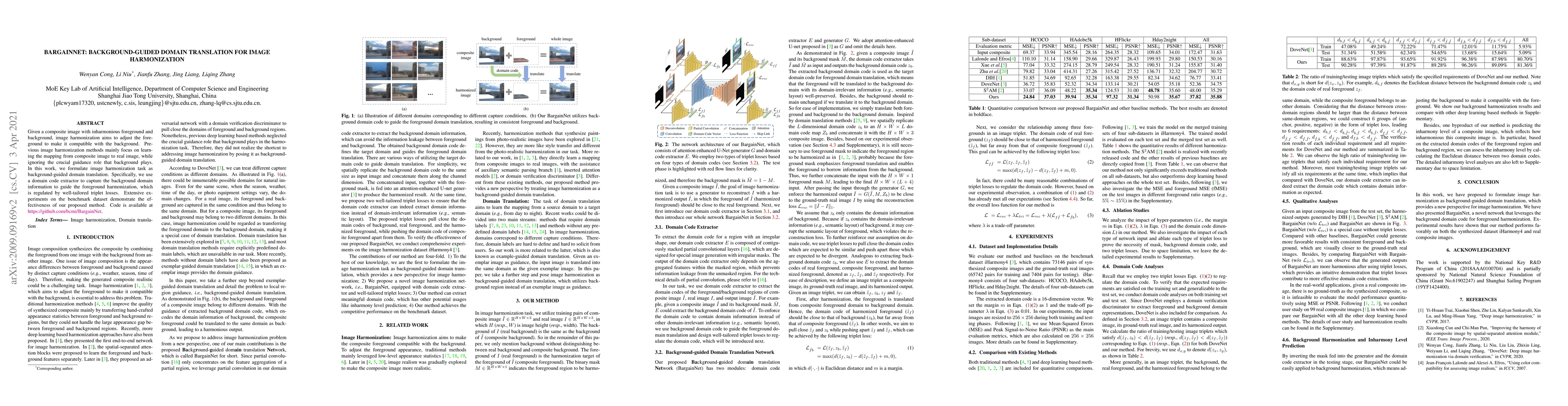BargainNet proposes a novel image harmonization network that leverages background-guided domain translation to harmonize foregrounds. It employs a domain code extractor and triplet losses to capture background domain information, significantly improving composite image consistency.