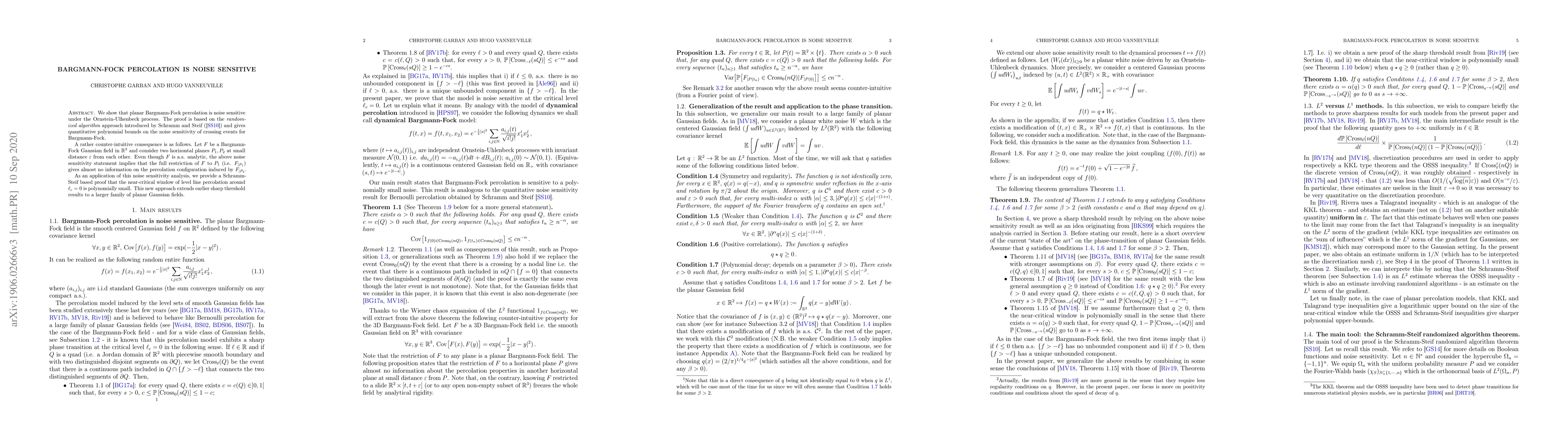 The paper introduces a novel application of the Schramm-Steif randomized algorithm to prove noise sensitivity for Bargmann-Fock percolation, providing precise polynomial bounds on crossing event probabilities.