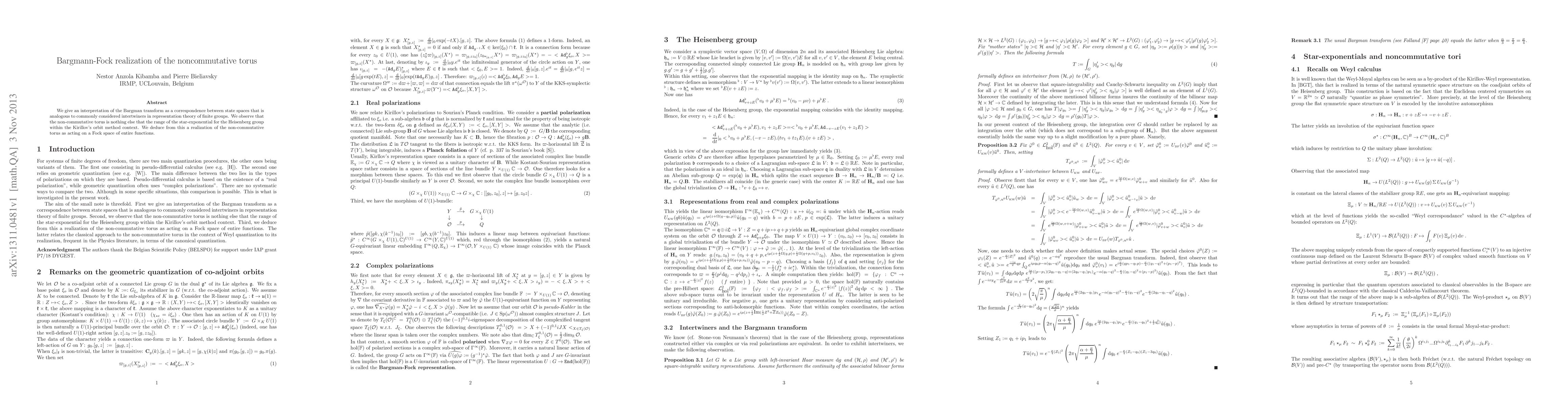 The Bargman-Fock realization provides a representation theory-inspired interpretation of the noncommutative torus, linking it to Kirillov's orbit method and enabling its action on a Fock space of entire functions.