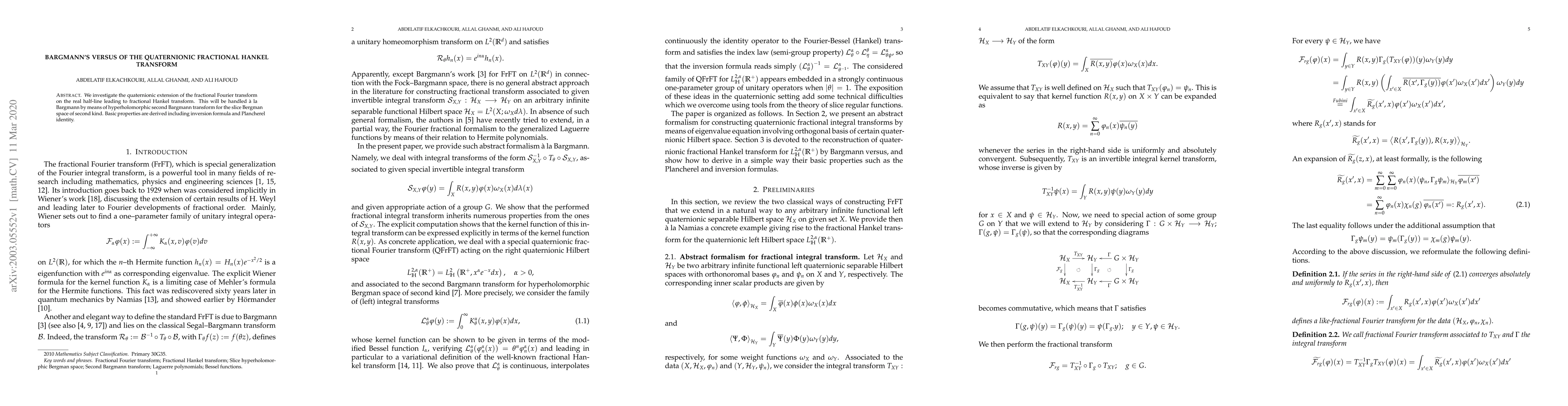 This paper explores the quaternionic fractional Hankel transform, extending the fractional Fourier transform on the real half-line using Bargmann's hyperholomorphic second Bargmann transform for the slice Bergman space of second kind, and derives fundamental properties such as the inversion formula and Plancherel identity.