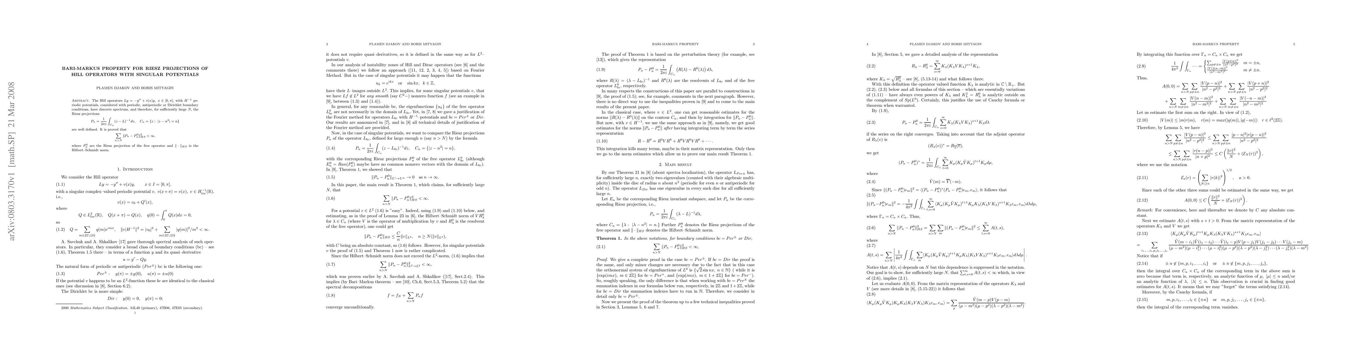 The Hill operators $L y = - y^{\prime \prime} + v(x) y, x \in [0,\pi],$ with $H^{-1}$ periodic potentials, considered with periodic, antiperiodic or Dirichlet boundary conditions, have discrete spectrum, and therefore, for sufficiently large $N,$ the Riesz projections $$ P_n = \frac{1}{2\pi i} \int_{C_n} (z-L)^{-1} dz, \quad C_n=\{z: |z-n^2|= n\} $$ are well defined. It is proved that $$\sum_{n>N} \|P_n - P_n^0\|^2_{HS} < \infty, $$ where $P_n^0$ are the Riesz projection of the free operator and $\|\cdot\|_{HS}$ is the Hilbert--Schmidt norm.