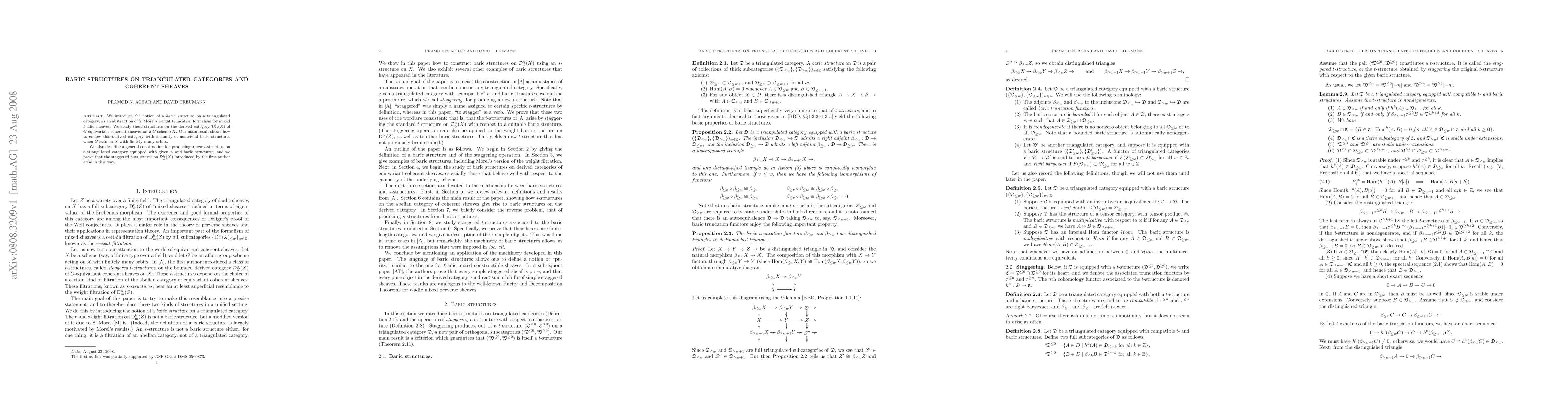 This paper introduces "baric structures" on triangulated categories, abstracting Morel's weight truncation for mixed l-adic sheaves. It demonstrates how to endow the derived category of G-equivariant coherent sheaves on a G-scheme with nontrivial baric structures when G has finitely many orbits.