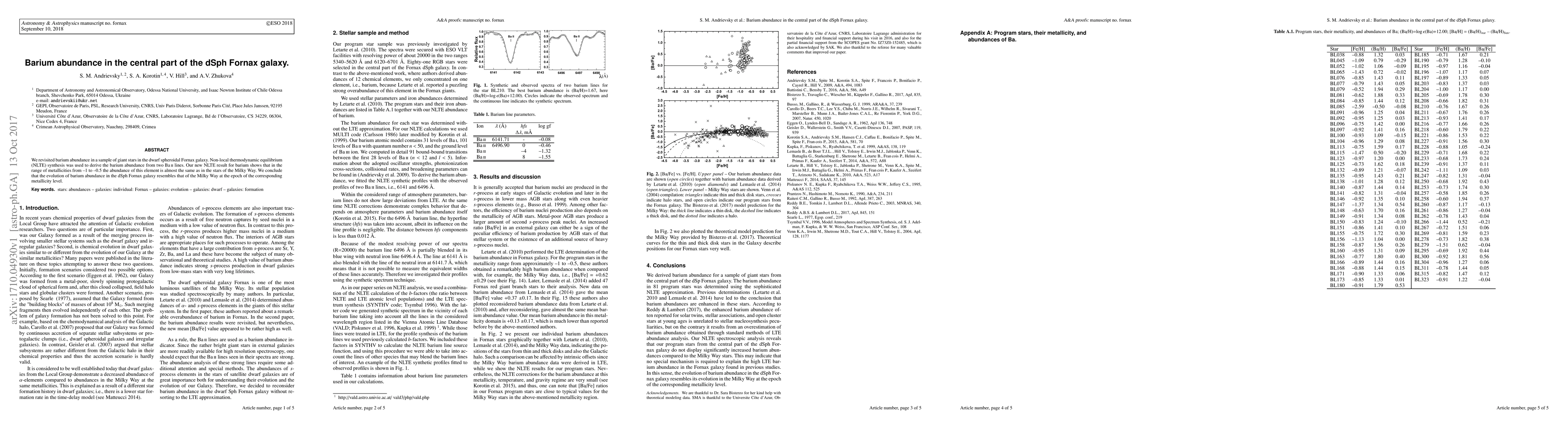 We revisited barium abundance in a sample of giant stars in the dwarf spheroidal Fornax galaxy. Non-local thermodynamic equilibrium (NLTE) synthesis was used to derive the barium abundance from two Ba II lines. Our new NLTE result for barium shows that in the range of metallicities from -1 to -0.5 the abundance of this element is almost the same as in the stars of the Milky Way. We conclude that the evolution of barium abundance in the dSph Fornax galaxy resembles that of the Milky Way at the epoch of the corresponding metallicity level.