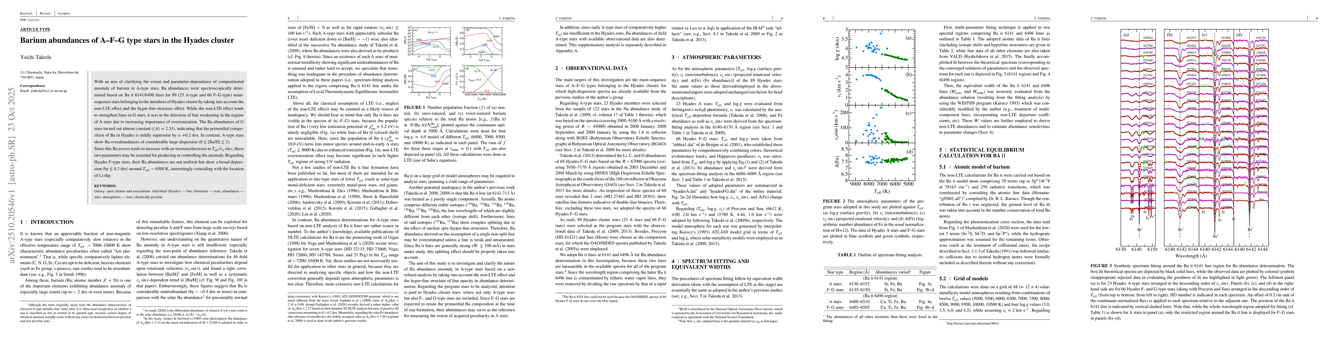 The study employed non-LTE (Local Thermodynamic Equilibrium) calculations and high-resolution spectroscopy to analyze barium abundances in A-, F-, and G-type stars within the Hyades cluster. These methods were used to account for hyperfine structure effects and to determine accurate abundance values.