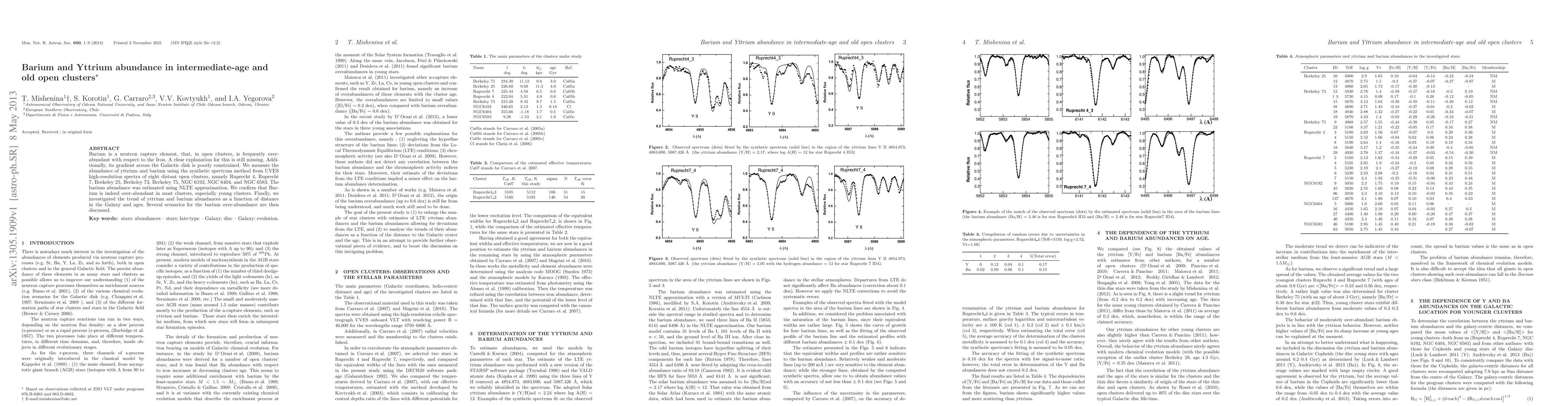 Barium is a neutron capture element, that, in open clusters, is frequently over-abundant with respect to the Iron. A clear explanation for this is still missing. Additionally, its gradient across the Galactic disk is poorly constrained. We measure the abundance of yttrium and barium using the synthetic spectrum method from UVES high-resolution spectra of eight distant open clusters, namely Ruprecht 4, Ruprecht 7, Berkeley 25, Berkeley 73, Berkeley 75, NGC 6192, NGC 6404, and NGC 6583. The barium abundance was estimated using NLTE approximation. We confirm that Barium is indeed over-abundant in most clusters, especially young clusters. Finally, we investigated the trend of yttrium and barium abundances as a function of distance in the Galaxy and ages. Several scenarios for the barium over-abundance are then discussed.