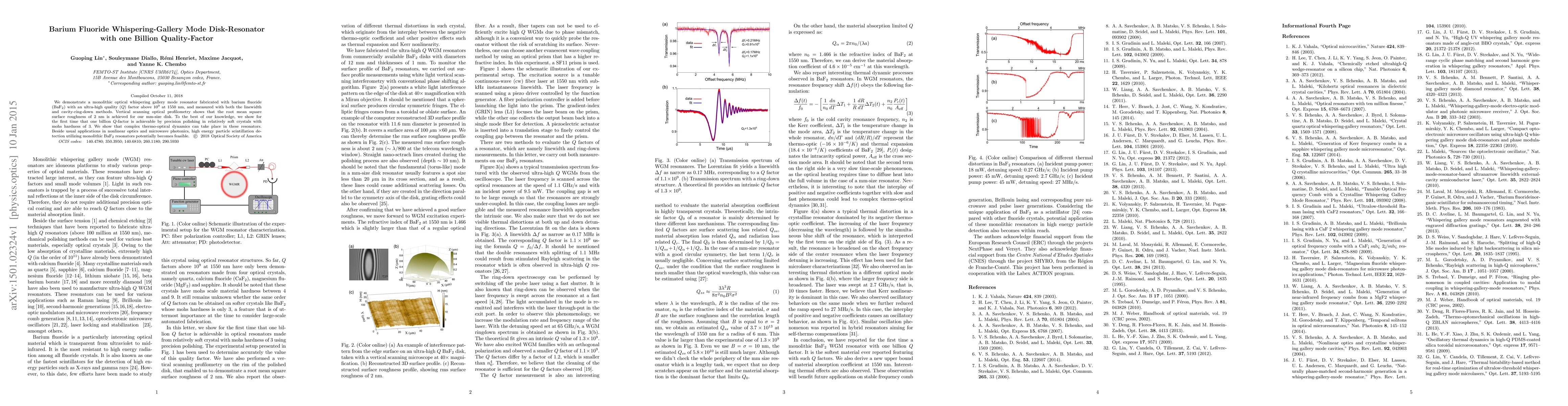 The paper demonstrates a BaF$_2$ whispering-gallery-mode resonator achieving an ultra-high quality factor exceeding $10^9$ at $1550$ nm, showcasing a surface roughness of 2 nm through precision polishing. It suggests potential applications in nonlinear optics, microwave photonics, and high-energy particle scintillation detection.