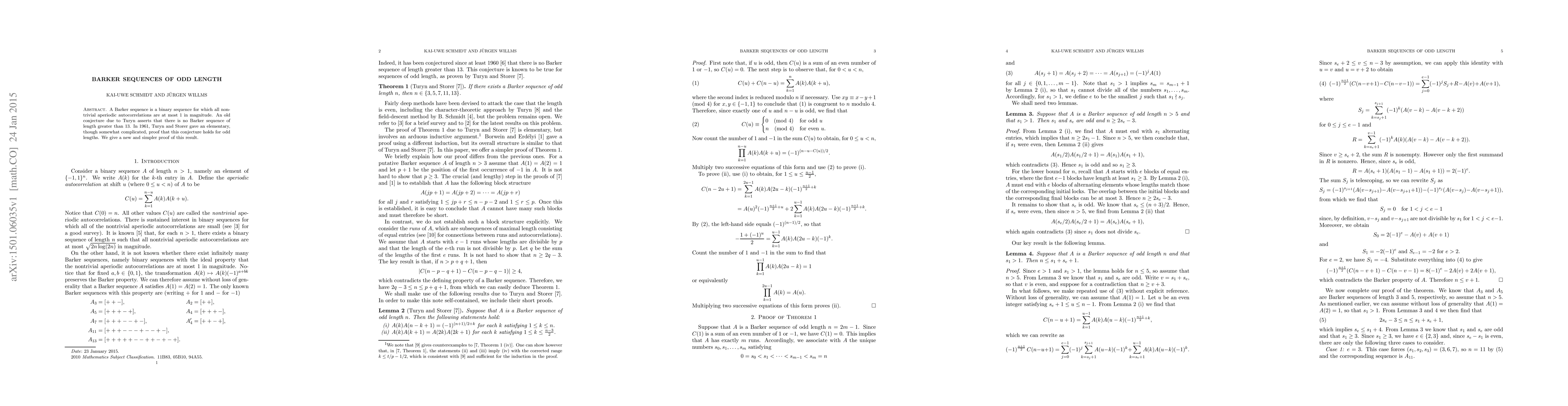 This paper presents a new, simplified proof for the conjecture that no Barker sequence of odd length greater than 13 exists, originally proven by Turyn and Storer in 1961. The new approach aims to provide clearer understanding of the limitations on Barker sequences.