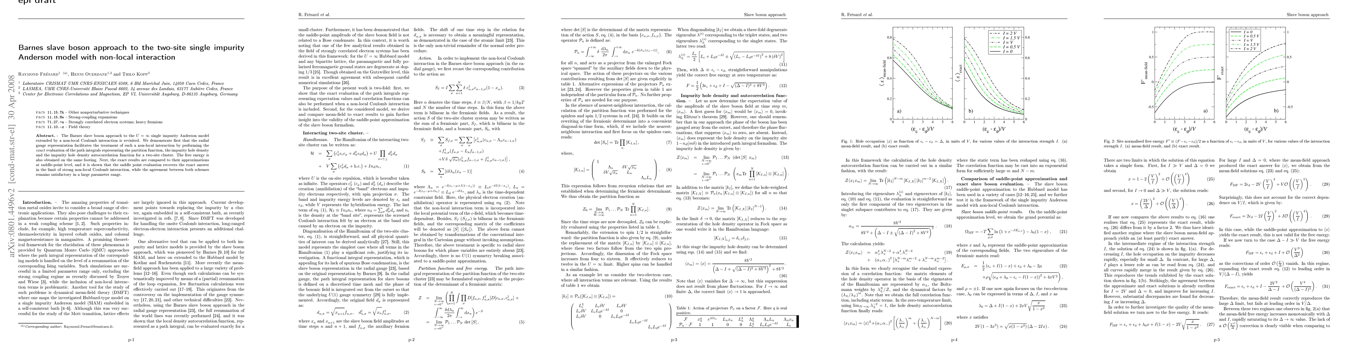 The Barnes slave boson approach to the $U=\infty$ single impurity Anderson model extended by a non-local Coulomb interaction is revisited. We demonstrate first that the radial gauge representation facilitates the treatment of such a non-local interaction by performing the \emph{exact} evaluation of the path integrals representing the partition function, the impurity hole density and the impurity hole density autocorrelation function for a two-site cluster. The free energy is also obtained on the same footing. Next, the exact results are compared to their approximations at saddle-point level, and it is shown that the saddle point evaluation recovers the exact answer in the limit of strong non-local Coulomb interaction, while the agreement between both schemes remains satisfactory in a large parameter range.