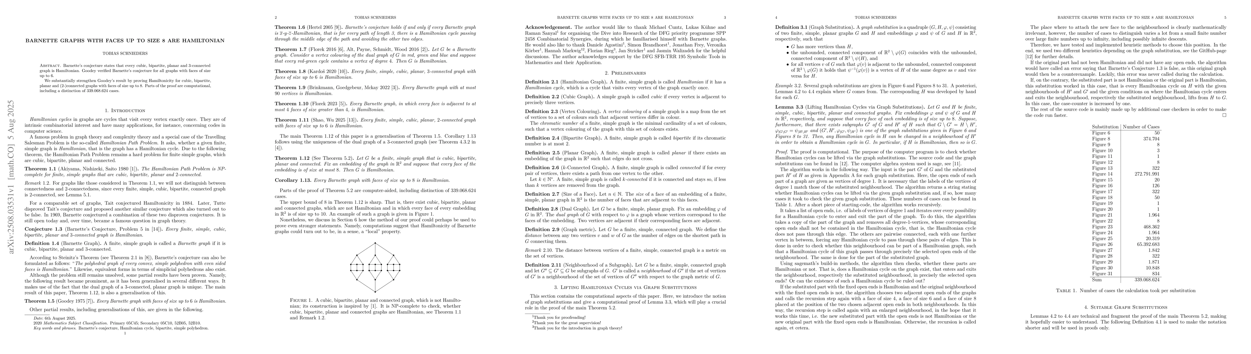 Barnette's conjecture states that every cubic, bipartite, planar and 3-connected graph is Hamiltonian. Goodey verified Barnette's conjecture for all graphs with faces of size up to 6. We substantially strengthen Goodey's result by proving Hamiltonicity for cubic, bipartite, planar and (2-)connected graphs with faces of size up to 8. Parts of the proof are computational, including a distinction of 339.068.624 cases.