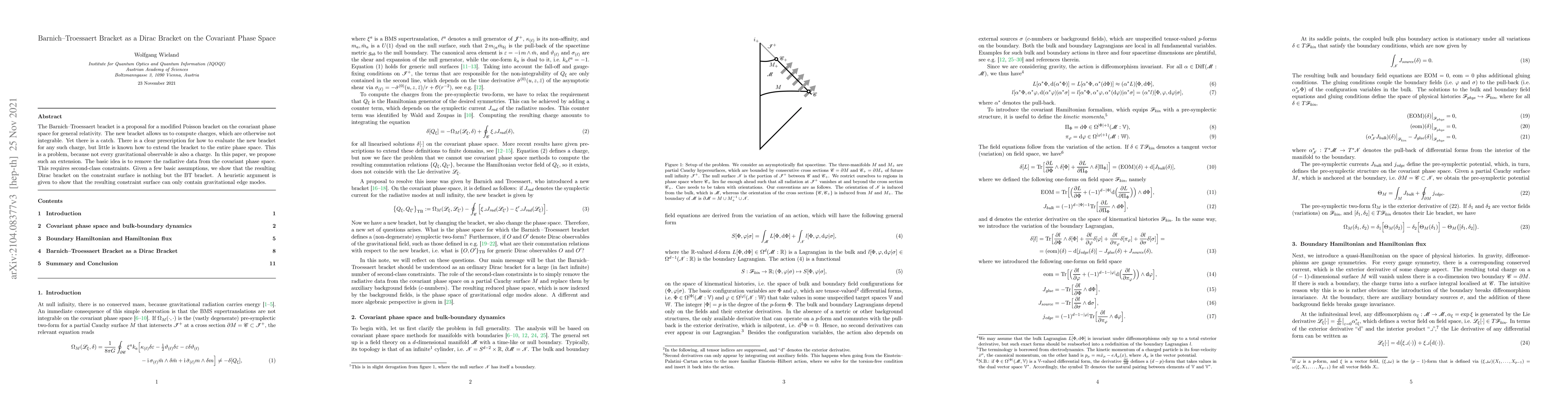 The Barnich--Troessaert bracket is a proposal for a modified Poisson bracket on the covariant phase space for general relativity. The new bracket allows us to compute charges, which are otherwise not integrable. Yet there is a catch. There is a clear prescription for how to evaluate the new bracket for any such charge, but little is known how to extend the bracket to the entire phase space. This is a problem, because not every gravitational observable is also a charge. In this paper, we propose such an extension. The basic idea is to remove the radiative data from the covariant phase space. This requires second-class constraints. Given a few basic assumptions, we show that the resulting Dirac bracket on the constraint surface is nothing but the BT bracket. A heuristic argument is given to show that the resulting constraint surface can only contain gravitational edge modes.