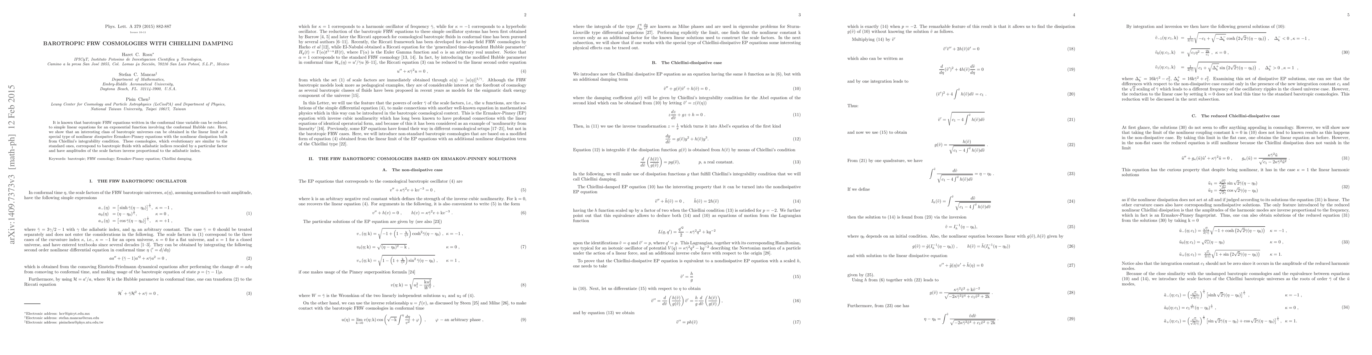 This paper explores barotropic Friedmann-Robertson-Walker (FRW) cosmologies using Chiellini damping, demonstrating that these cosmologies can be derived from a special type of nonlinear dissipative Ermakov-Pinney equation. The resulting universes have similar evolutionary paths to standard models but involve fluids with rescaled adiabatic indices and scale factors inversely proportional to these indices.