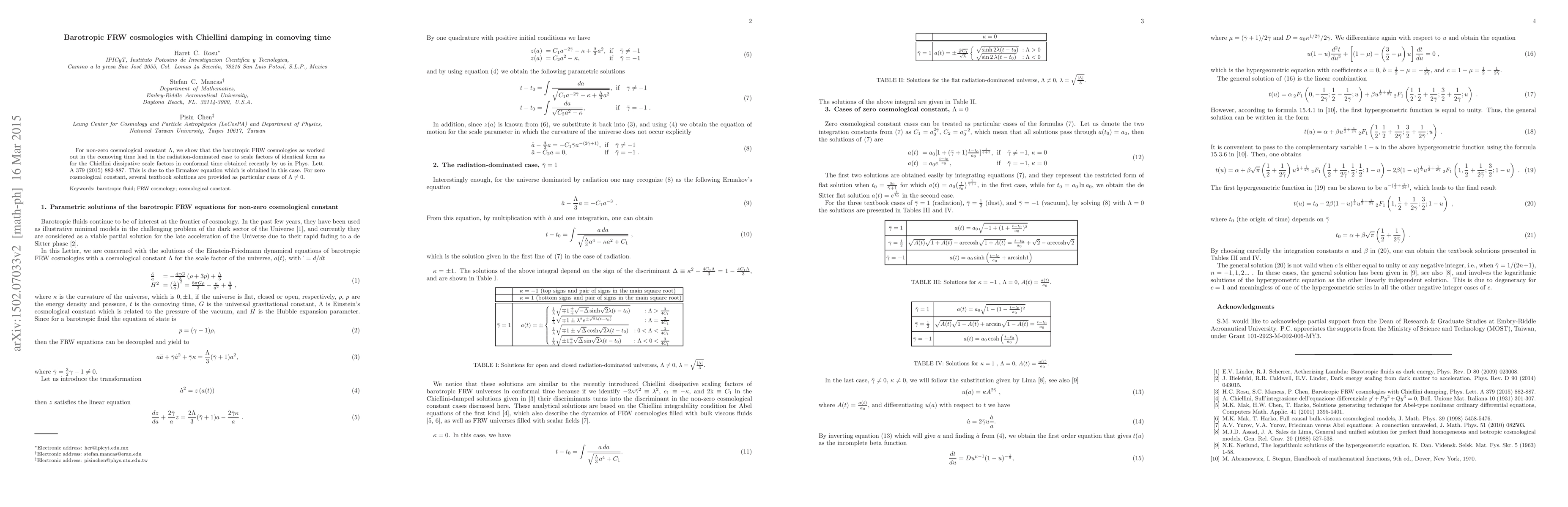 This paper investigates barotropic FRW cosmologies in comoving time with a non-zero cosmological constant, showing that radiation-dominated scale factors match those with Chiellini damping in conformal time. For zero cosmological constant, it provides textbook solutions as special cases.