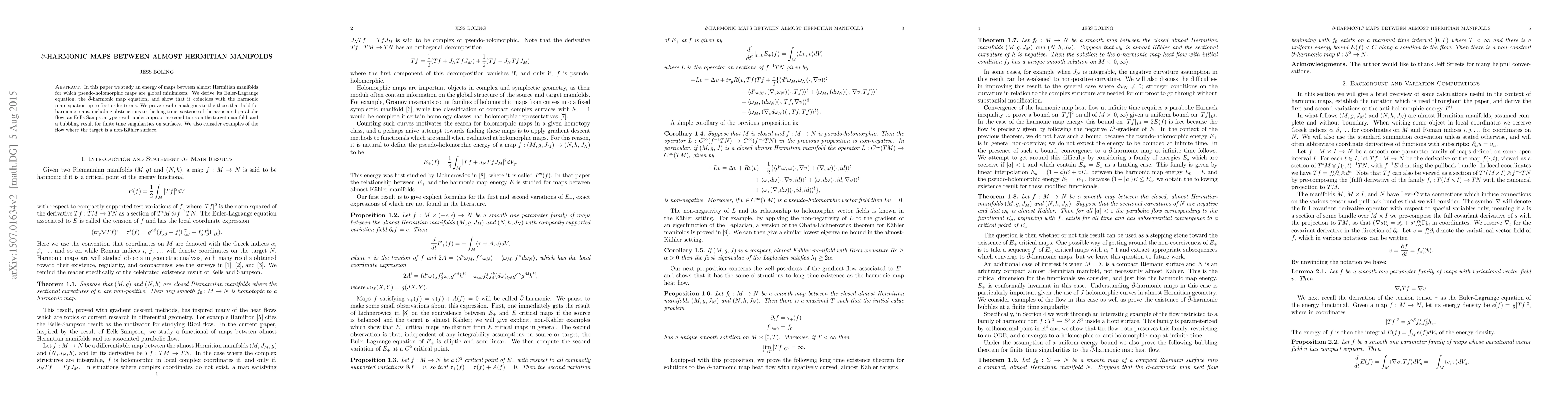 In this paper we study an energy of maps between almost Hermitian manifolds for which pseudo-holomorphic maps are global minimizers. We derive its Euler-Lagrange equation, the $\bar{\partial}$-harmonic map equation, and show that it coincides with the harmonic map equation up to first order terms. We prove results analogous to the those that hold for harmonic maps, including obstructions to the long time existence of the associated parabolic flow, an Eells-Sampson type result under appropriate conditions on the target manifold, and a bubbling result for finite time singularities on surfaces. We also consider examples of the flow where the target is a non-Kahler surface.