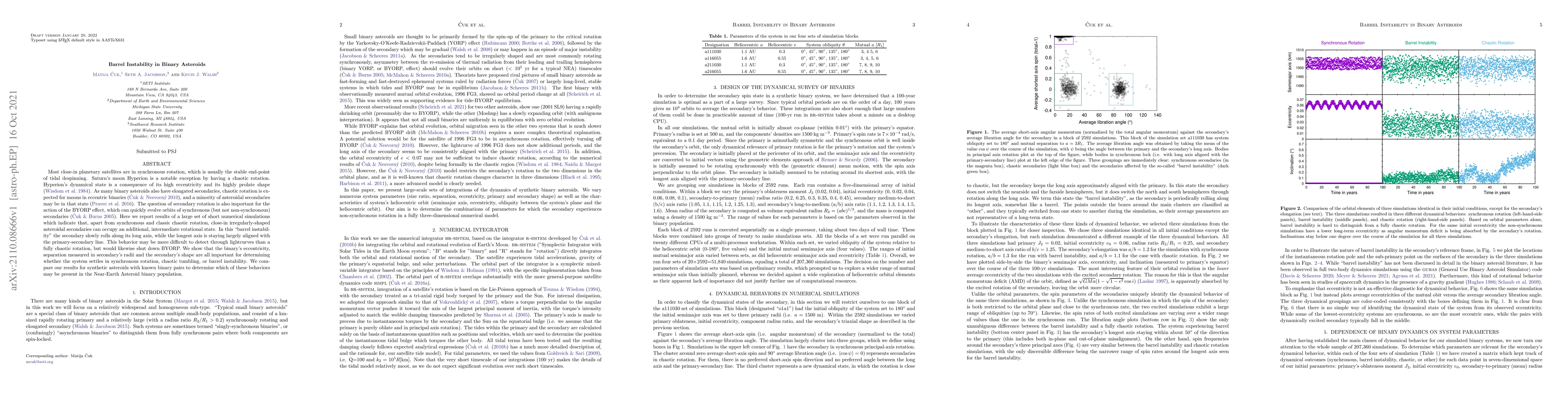 Most close-in planetary satellites are in synchronous rotation, which is usually the stable end-point of tidal despinning. Saturn's moon Hyperion is a notable exception by having a chaotic rotation. Hyperion's dynamical state is a consequence of its high eccentricity and its highly prolate shape (Wisdom et al. 1984). As many binary asteroids also have elongated secondaries, chaotic rotation is expected for moons in eccentric binaries (\'Cuk and Nesvorn\'y, 2010), and a minority of asteroidal secondaries may be in that state (Pravec et al. 2016). The question of secondary rotation is also important for the action of the BYORP effect, which can quickly evolve orbits of synchronous (but not non-synchronous) secondaries (\'Cuk and Burns, 2005). Here we report results of a large set of short numerical simulations which indicate that, apart from synchronous and classic chaotic rotation, close-in irregularly-shaped asteroidal secondaries can occupy an additional, intermediate rotational state. In this ``barrel instability'' the secondary slowly rolls along its long axis, while the longest axis is staying largely aligned with the primary-secondary line. This behavior may be more difficult to detect through lightcurves than a fully chaotic rotation, but would likewise shut down BYORP. We show that the binary's eccentricity, separation measured in secondary's radii and the secondary's shape are all important for determining whether the system settles in synchronous rotation, chaotic tumbling, or barrel instability. We compare our results for synthetic asteroids with known binary pairs to determine which of these behaviors may be present in the Near-Earth Asteroid binary population.