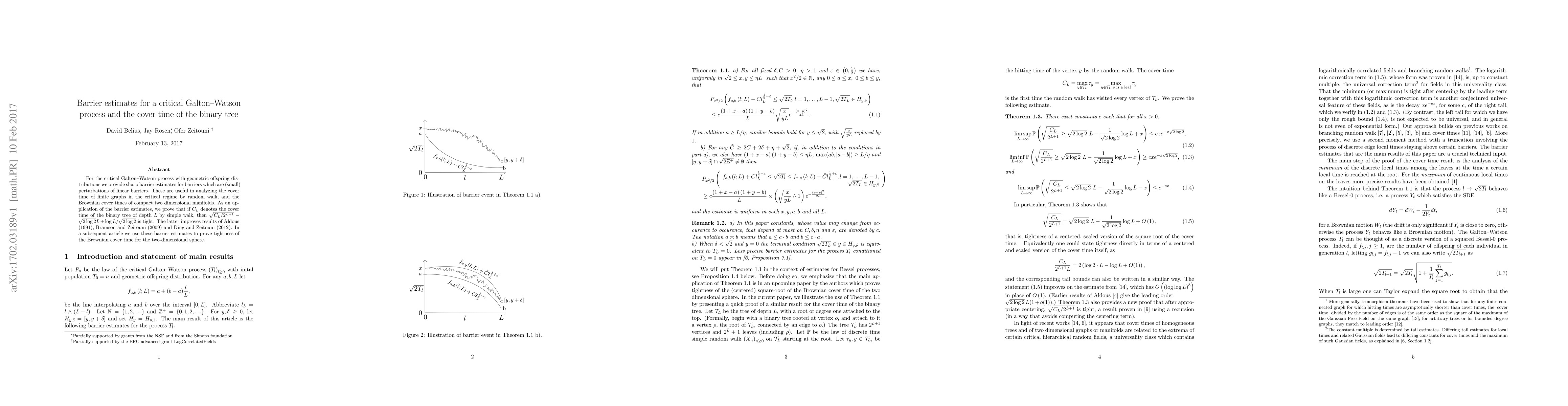 For the critical Galton--Watson process with geometric offspring distributions we provide sharp barrier estimates for barriers which are (small) perturbations of linear barriers. These are useful in analyzing the cover time of finite graphs in the critical regime by random walk, and the Brownian cover times of compact two dimensional manifolds. As an application of the barrier estimates, we prove that if $C_L$ denotes the cover time of the binary tree of depth $L$ by simple walk, then $\sqrt{C_L/2^{L+1}} -\sqrt{2\log 2} L+\log L/\sqrt{2\log 2}$ is tight. The latter improves results of Aldous (1991), Bramson and Zeitouni (2009) and Ding and Zeitouni (2012). In a subsequent article we use these barrier estimates to prove tightness of the Brownian cover time for the two-dimensional sphere.