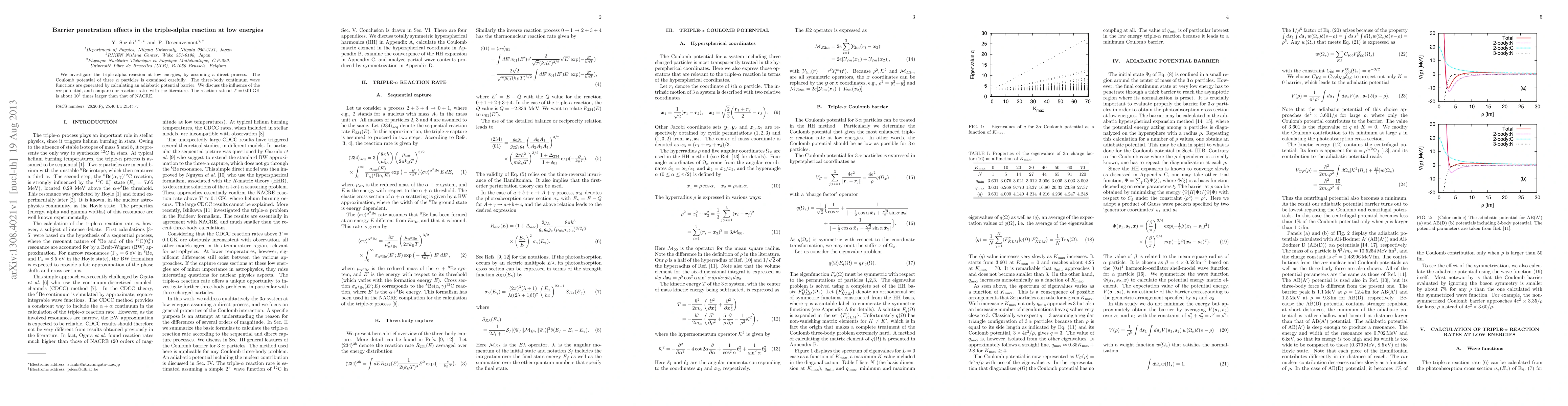 This paper examines the triple-alpha reaction at low energies, focusing on the Coulomb potential of three $\alpha$ particles and the adiabatic potential barrier. The calculated reaction rate at $T=0.01$ GK is found to be about 10$^3$ times higher than previously reported values.