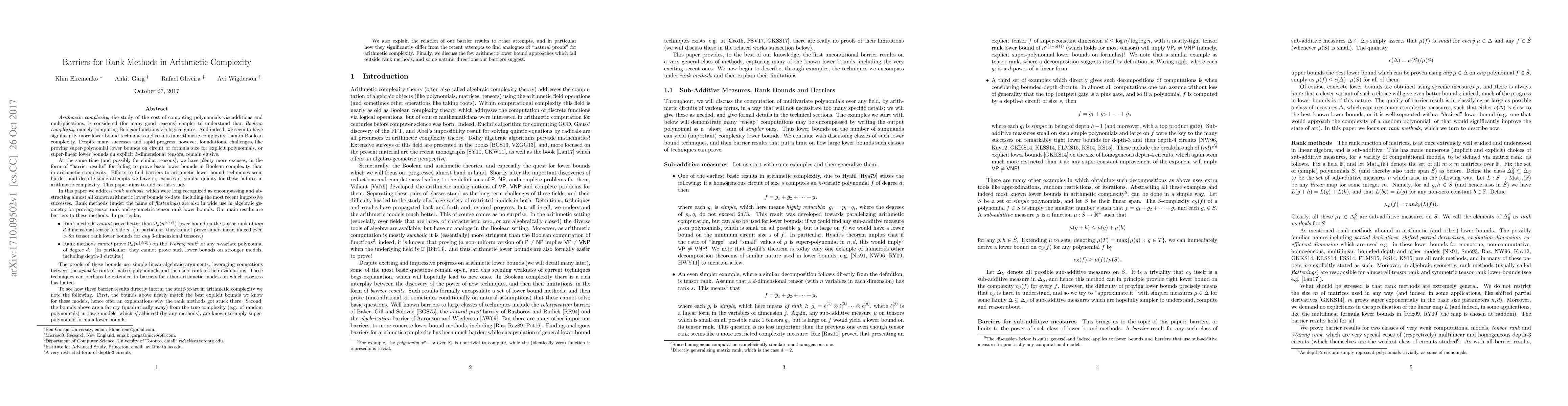 This paper identifies significant barriers to rank methods in proving arithmetic complexity lower bounds, highlighting their limitations in proving super-polynomial lower bounds for explicit polynomials and super-linear lower bounds for 3-dimensional tensors. The main results show that rank methods cannot achieve better than $\Omega_d (n^{\lfloor d/2 \rfloor})$ lower bounds for tensor rank and Waring rank.