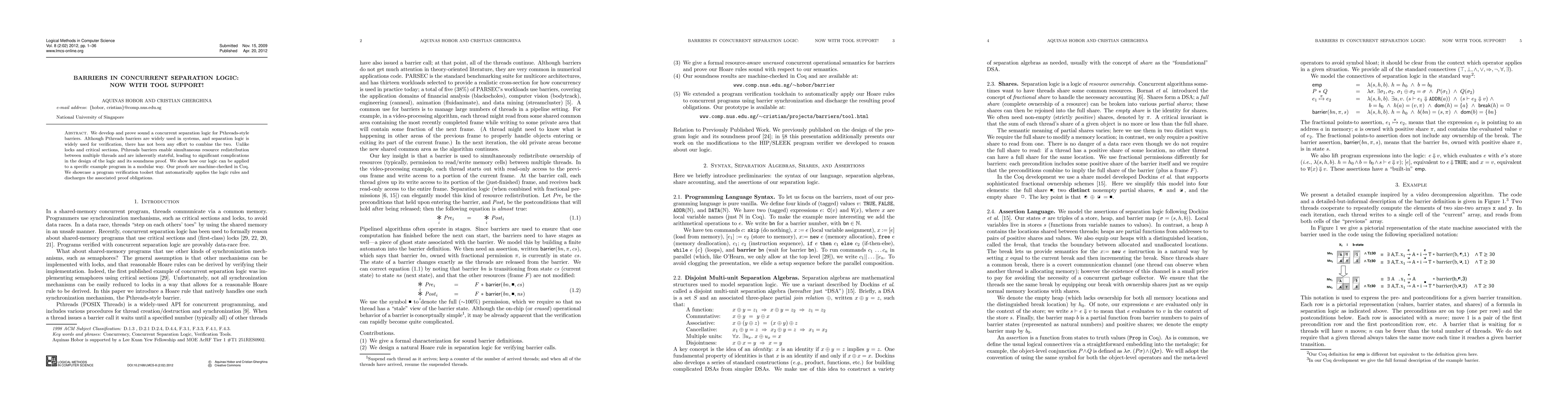This research develops a concurrent separation logic for Pthreads barriers, proving its soundness and applying it to a specific example. The toolset for this logic is machine-checked in Coq and can automatically apply logic rules and discharge proof obligations, addressing the inherent statefulness and complexity of Pthreads barriers.