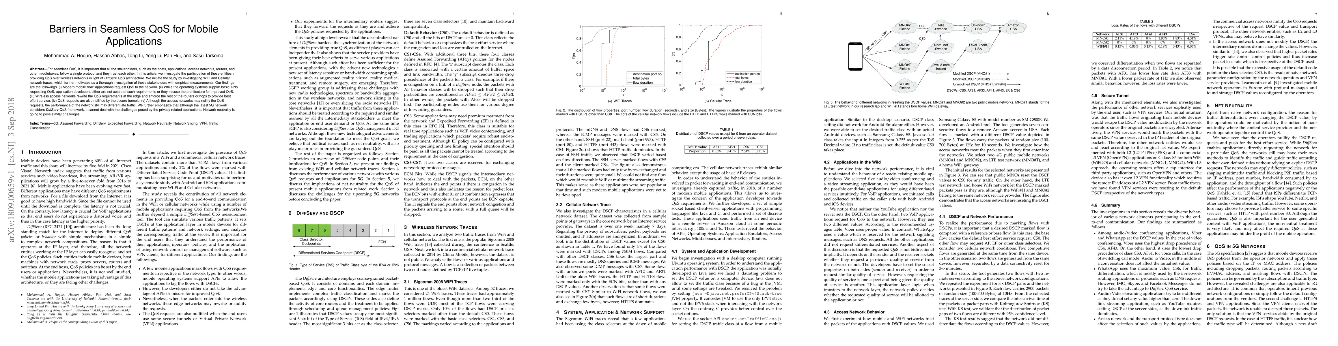 This paper investigates barriers to seamless QoS in mobile applications, finding that while modern VoIP apps request QoS, developers misuse the architecture, and wireless networks often enforce best-effort service despite QoS requests. It highlights that even with 5G's DiffServ framework, privacy-related applications and network neutrality pose ongoing challenges.