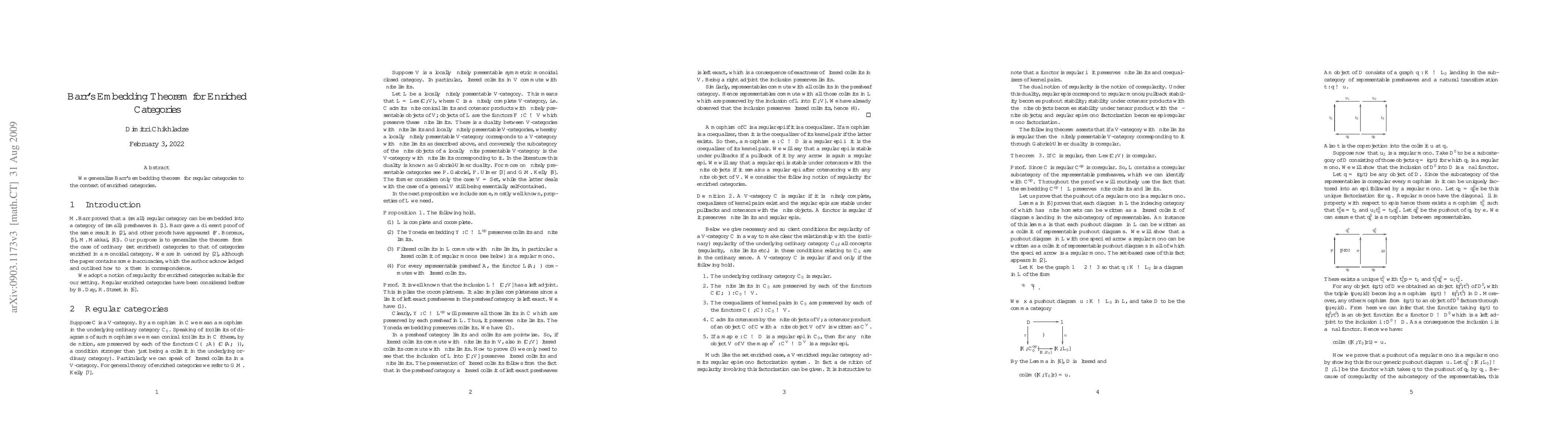 Summary: This paper extends Barr's Embedding Theorem from regular categories to enriched categories, providing a new framework for understanding how certain categorical structures can be embedded in others within the context of enriched settings.