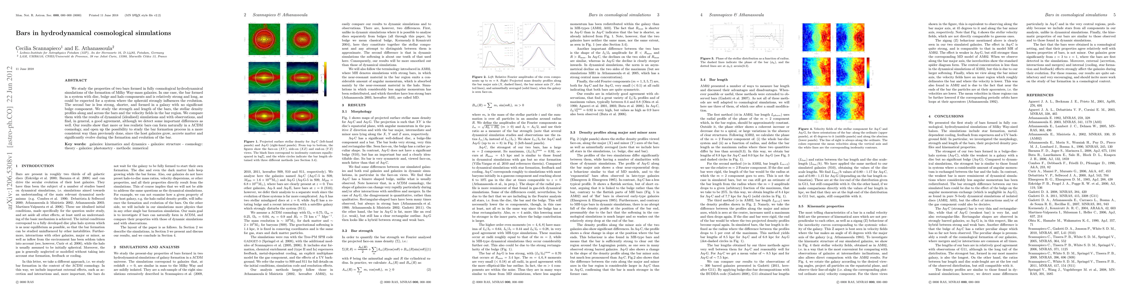 The paper presents a method for analyzing bar properties in cosmological simulations, comparing them with dynamical simulations and observations.