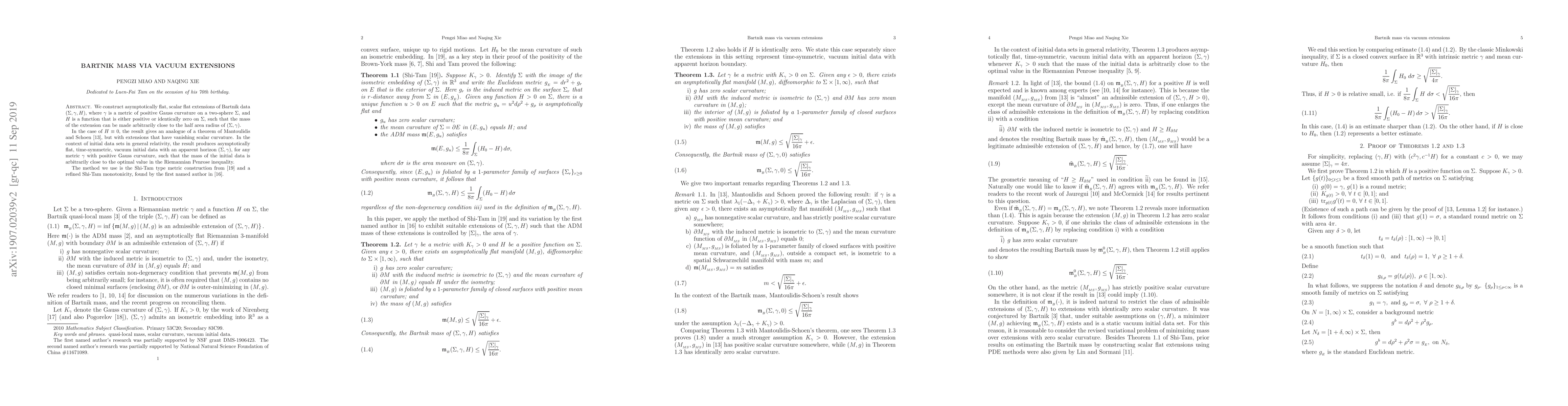 This paper constructs asymptotically flat, vacuum extensions of Bartnik data, achieving a mass arbitrarily close to the half area radius of the initial two-sphere, using a refined Shi-Tam metric construction method. The result provides time-symmetric, vacuum initial data in general relativity with an apparent horizon, optimizing the mass near the Riemannian Penrose inequality.