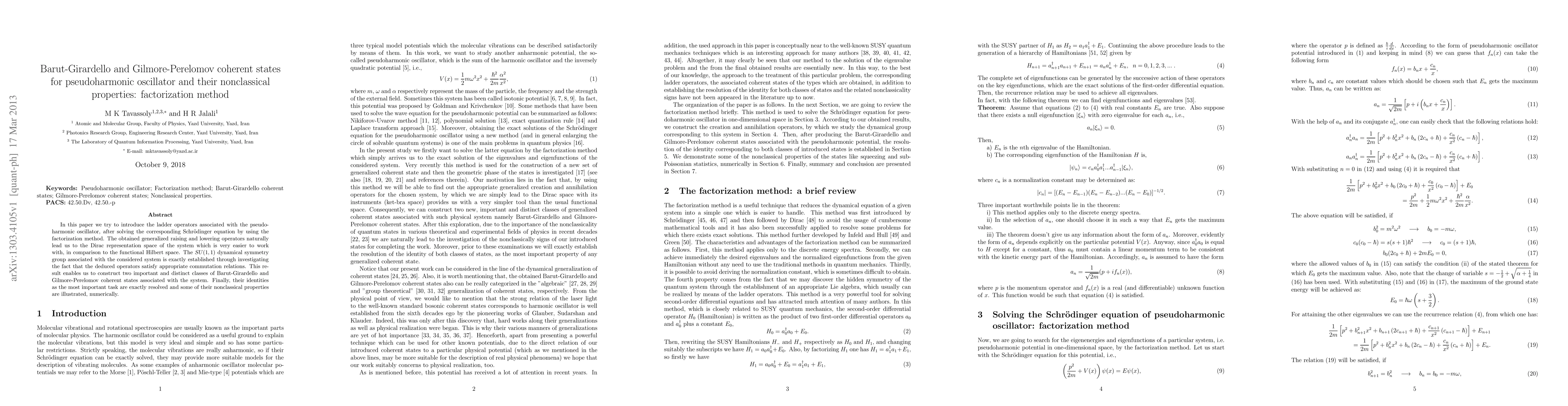 This paper introduces ladder operators for a pseudoharmonic oscillator using the factorization method, establishing a dynamical symmetry group. It constructs Barut-Girardello and Gilmore-Perelomov coherent states and explores their nonclassical properties numerically.