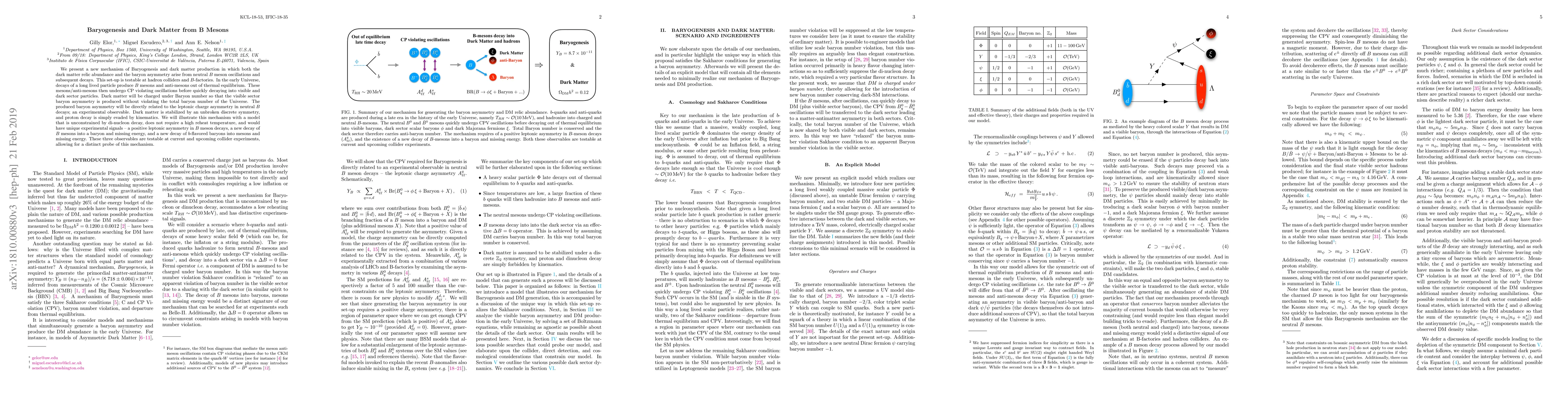 This paper proposes a novel mechanism for both baryogenesis and dark matter production via neutral $B$ meson oscillations and decays, with testable signals at hadron colliders and $B$-factories. The model links the visible sector baryon asymmetry to the leptonic charge asymmetry in $B$ meson decays, offering unique experimental signatures.