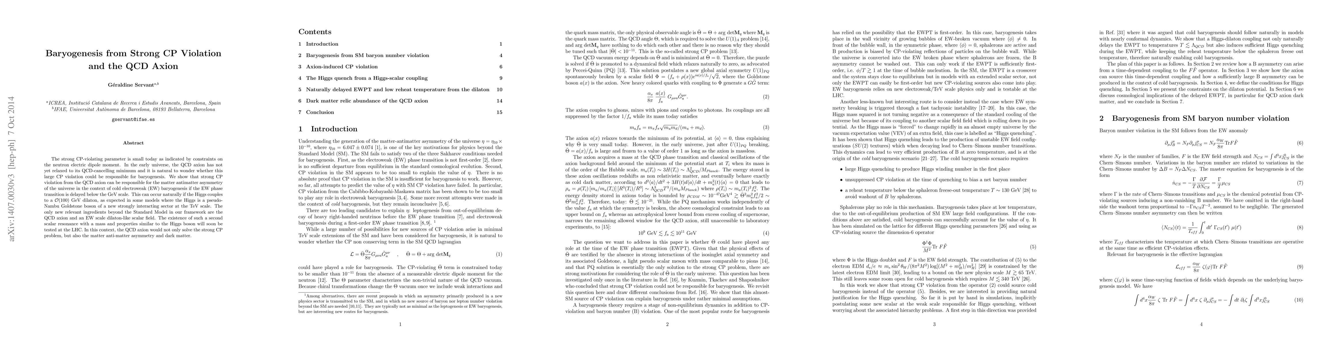 This paper explores how strong CP violation from the QCD axion can lead to baryogenesis in a delayed electroweak phase transition scenario, suggesting the axion could also address dark matter issues, with the dilaton-like scalar and axion being key extensions beyond the Standard Model. The existence of such a scalar resonance will be tested at the LHC.