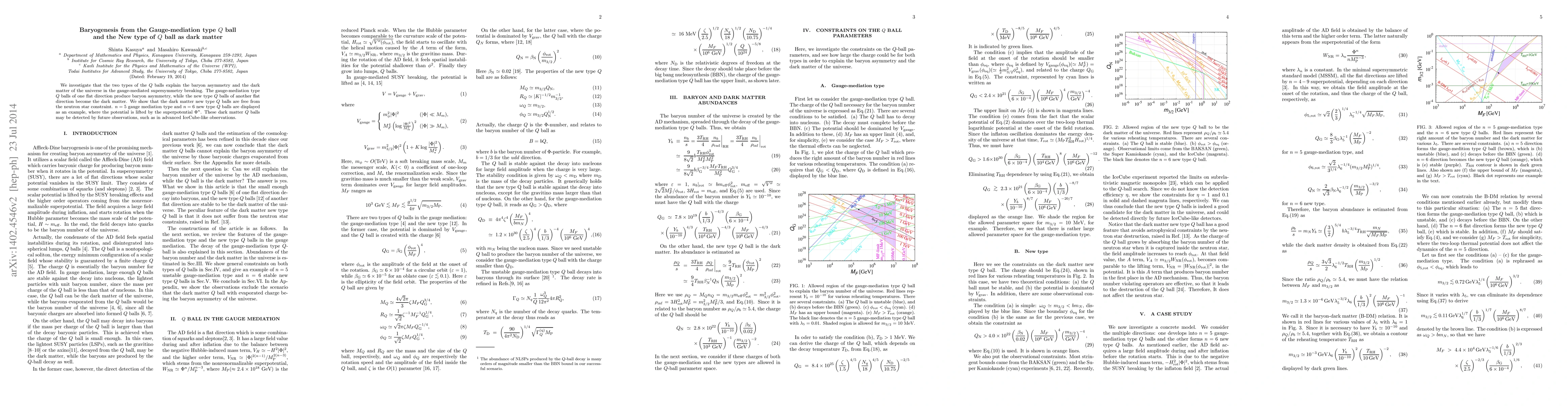 We investigate that the two types of the Q balls explain the baryon asymmetry and the dark matter of the universe in the gauge-mediated supersymmetry breaking. The gauge-mediation type Q balls of one flat direction produce baryon asymmetry, while the new type Q balls of another flat direction become the dark matter. We show that the dark matter new type Q balls are free from the neutron star constraint. n=5 gauge mediation type and n=6 new type Q balls are displayed as an example, where the potential is lifted by the superpotential Phi^n. These dark matter Q balls may be detected by future observations, such as in advanced IceCube-like observations.