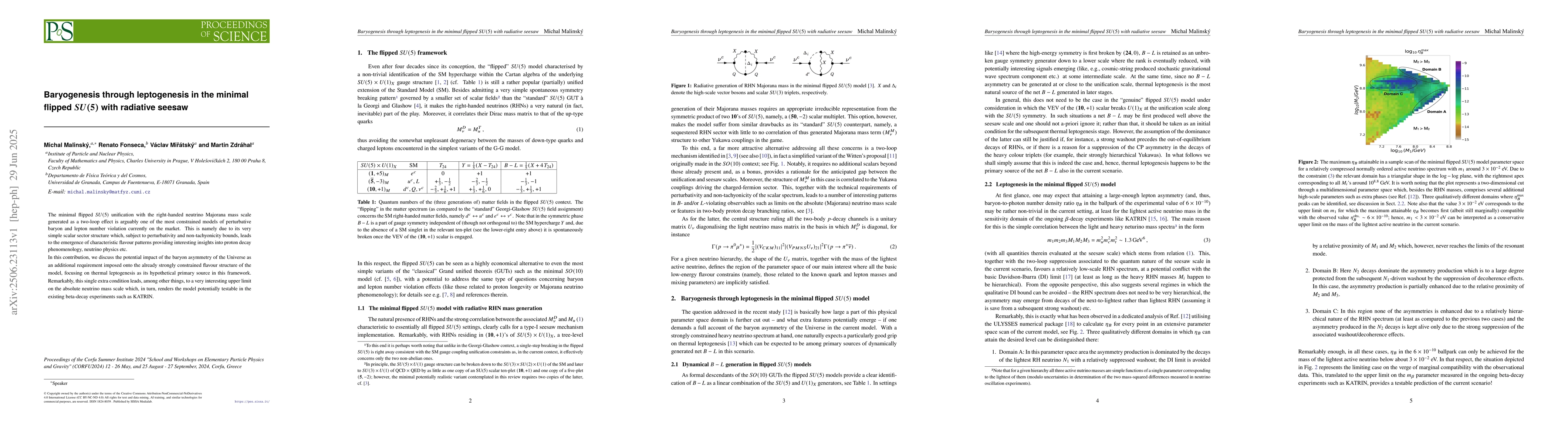 The minimal flipped $SU(5)$ unification with the right-handed neutrino Majorana mass scale generated as a two-loop effect is arguably one of the most constrained models of perturbative baryon and lepton number violation currently on the market. This is namely due to its very simple scalar sector structure which, subject to perturbativity and non-tachyonicity bounds, leads to the emergence of characteristic flavour patterns providing interesting insights into proton decay phenomenology, neutrino physics etc. In this contribution, we discuss the potential impact of the baryon asymmetry of the Universe as an additional requirement imposed onto the already strongly constrained flavour structure of the model, focusing on thermal leptogenesis as its hypothetical primary source in this framework. Remarkably, this single extra condition leads, among other things, to a very interesting upper limit on the absolute neutrino mass scale which, in turn, renders the model potentially testable in the existing beta-decay experiments such as KATRIN.