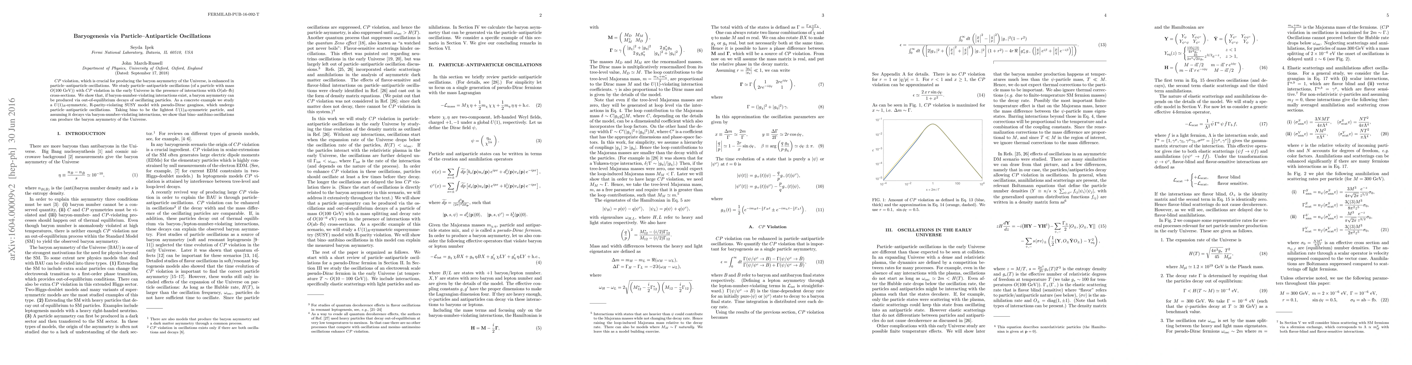 The paper presents a detailed analysis of baryogenesis via particle-antiparticle oscillations, incorporating CP violation and baryon number violation, and provides a concrete example within a supersymmetric model.