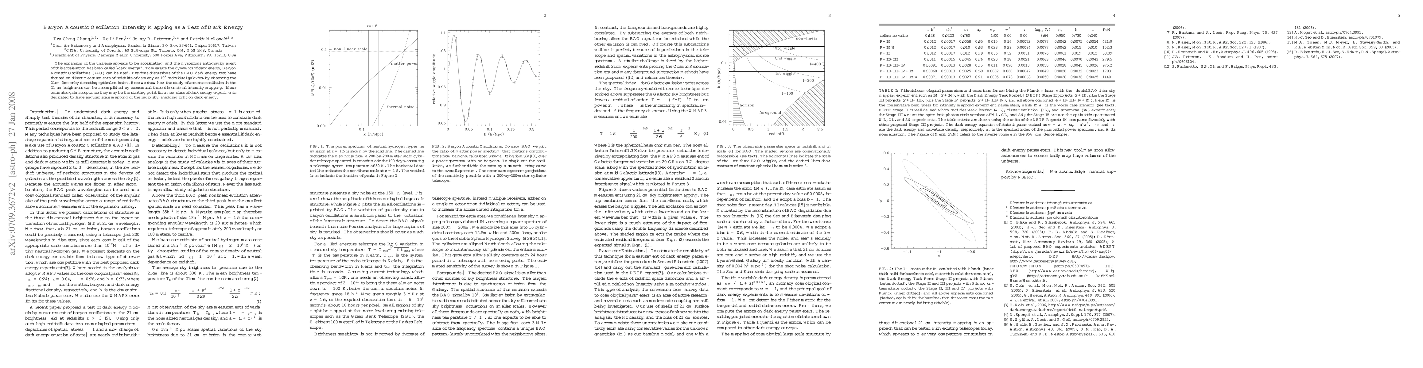 The expansion of the universe appears to be accelerating, and the mysterious anti-gravity agent of this acceleration has been called ``dark energy''. To measure the dynamics of dark energy, Baryon Acoustic Oscillations (BAO) can be used. Previous discussions of the BAO dark energy test have focused on direct measurements of redshifts of as many as $10^9$ individual galaxies, by observing the 21cm line or by detecting optical emission. Here we show how the study of acoustic oscillation in the 21 cm brightness can be accomplished by economical three dimensional intensity mapping. If our estimates gain acceptance they may be the starting point for a new class of dark energy experiments dedicated to large angular scale mapping of the radio sky, shedding light on dark energy.