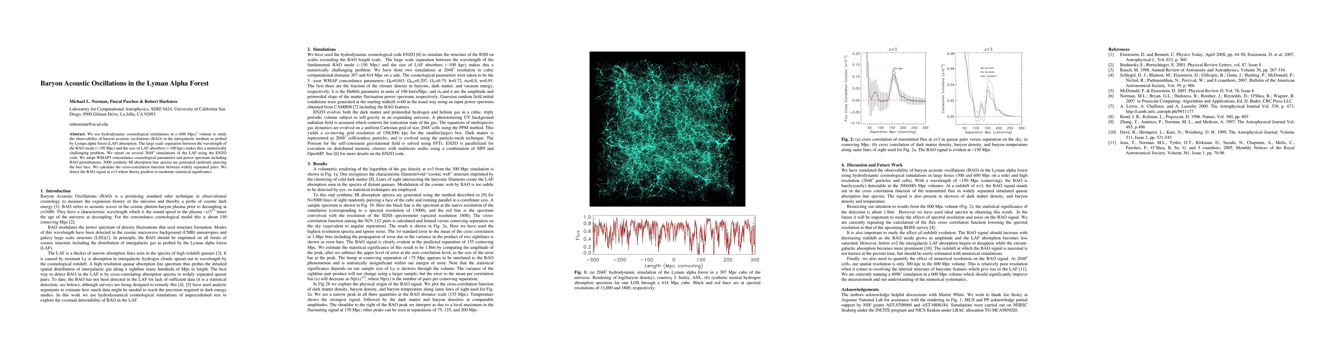 We use hydrodynamic cosmological simulations in a (600 Mpc)^3 volume to study the observability of baryon acoustic oscillations (BAO) in the intergalactic medium as probed by Lyman alpha forest (LAF) absorption. The large scale separation between the wavelength of the BAO mode (~150 Mpc) and the size of LAF absorbers (~100 kpc) makes this a numerically challenging problem. We report on several 2048^3 simulations of the LAF using the ENZO code. We adopt WMAP5 concordance cosmological parameters and power spectrum including BAO perturbations. 5000 synthetic HI absorption line spectra are generated randomly piercing the box face. We calculate the cross-correlation function between widely separated pairs. We detect the BAO signal at z=3 where theory predicts to moderate statistical significance.