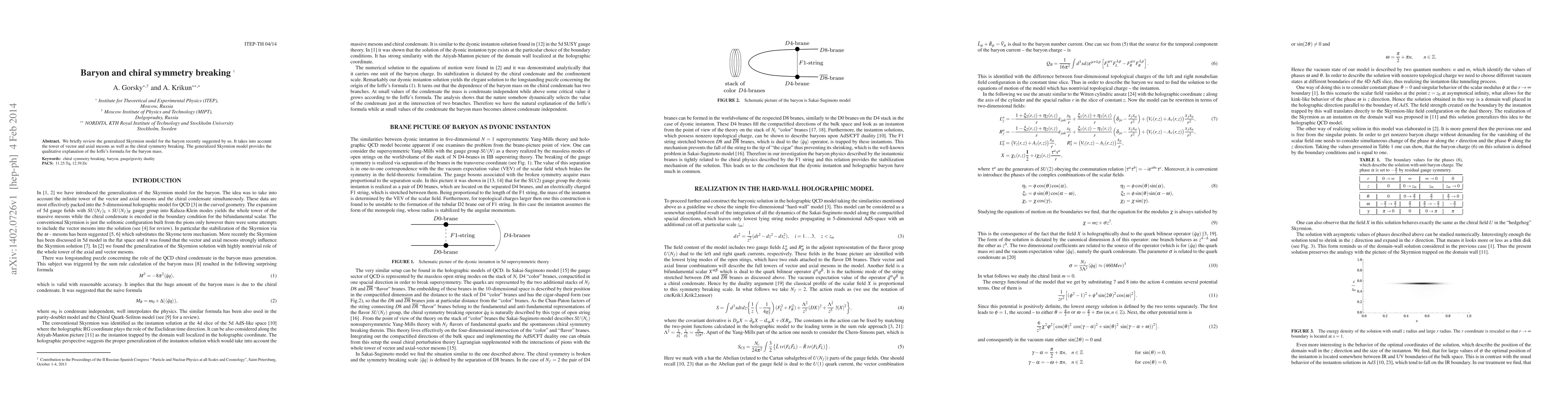 We briefly review the generalized Skyrmion model for the baryon recently suggested by us. It takes into account the tower of vector and axial mesons as well as the chiral symmetry breaking. The generalized Skyrmion model provides the qualitative explanation of the Ioffe's formula for the baryon mass.