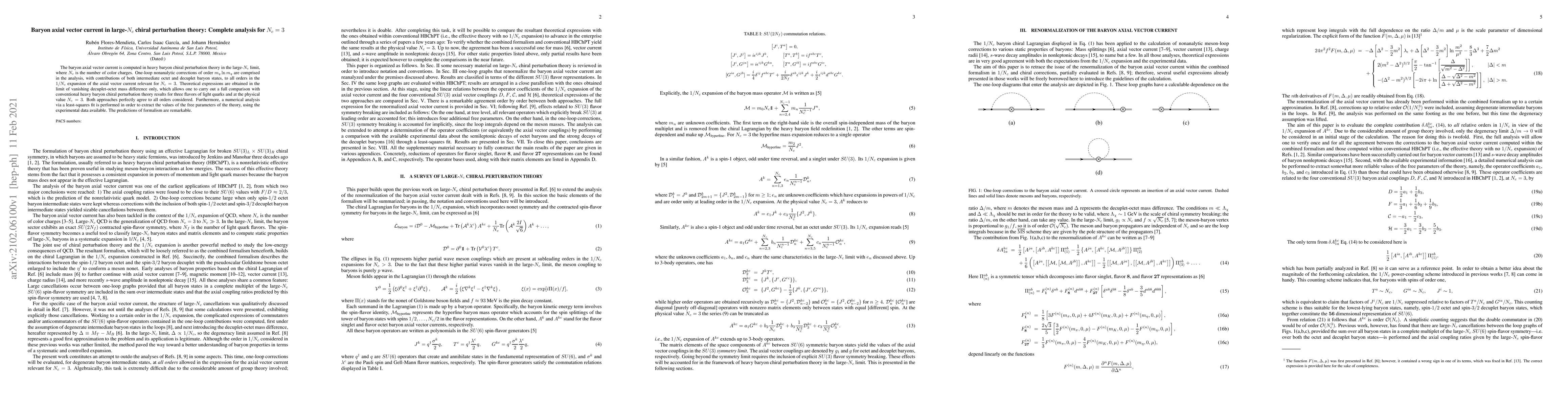 This paper computes the baryon axial vector current in large-$N_c$ chiral perturbation theory for $N_c=3$, incorporating one-loop corrections and contributions from both octet and decuplet baryons. It confirms the agreement between large-$N_c$ and conventional heavy baryon chiral perturbation theory, and uses experimental data to determine the theory's free parameters.