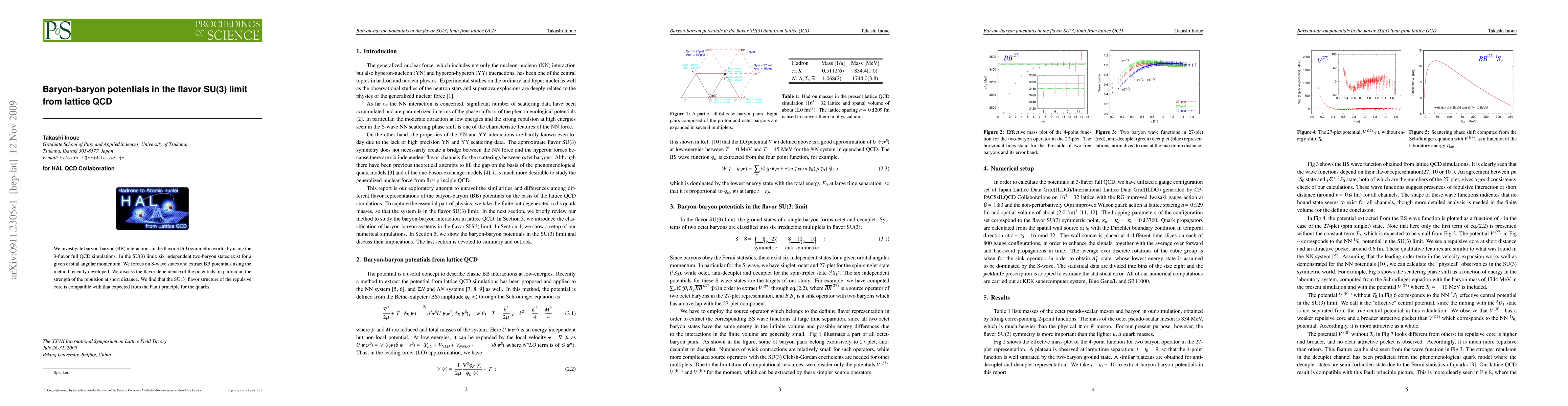This paper explores baryon-baryon interactions in the flavor SU(3) symmetric framework using lattice QCD simulations, focusing on S-wave states and extracting baryon-baryon potentials. The study reveals that the SU(3) flavor structure of the repulsive core aligns with expectations from the Pauli principle for quarks.