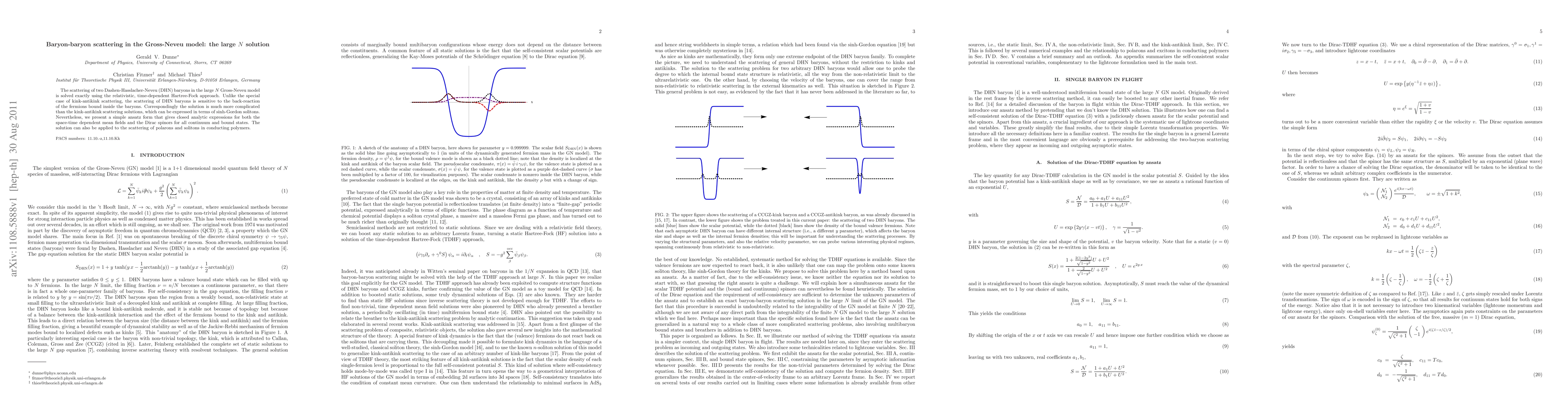 The paper presents an exact solution for baryon-baryon scattering in the Gross-Neveu model using the relativistic Hartree-Fock approach, revealing complex dynamics due to fermion back-reaction, and provides a simple ansatz for analytic expressions applicable to polarons and solitons in conducting polymers.