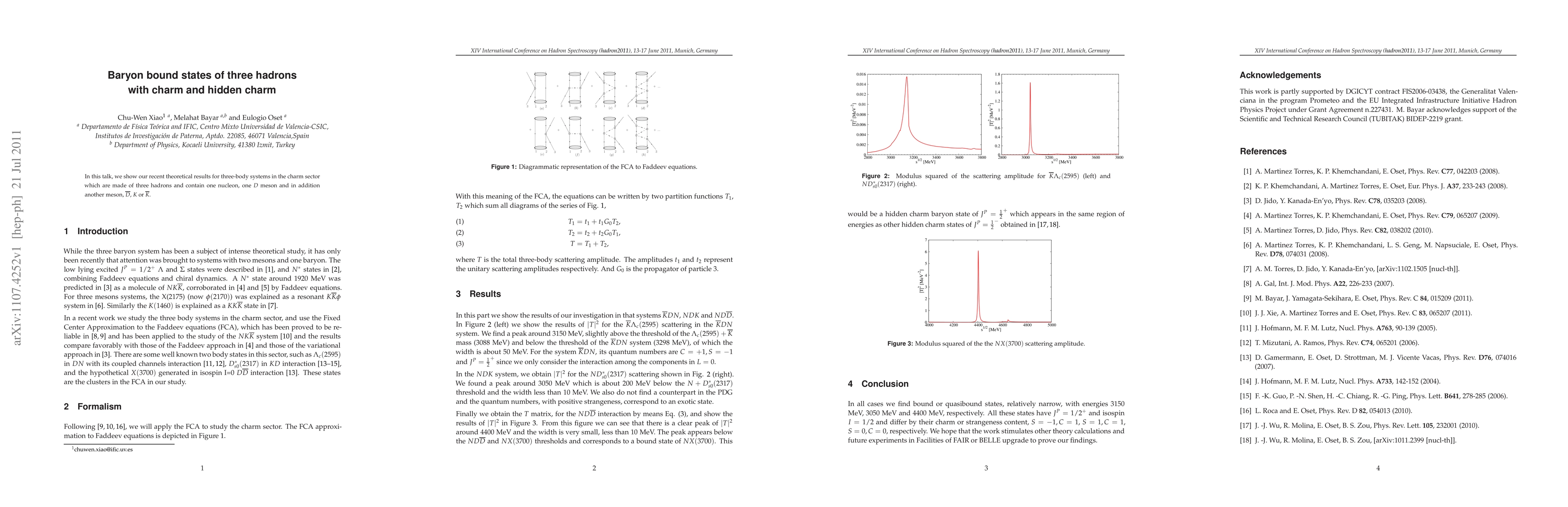 Researchers studied three-body systems in the charm sector, finding new insights into baryon bound states involving nucleons, D mesons, and other hidden charm particles. The study sheds light on the interactions between these particles and their potential implications for particle physics research.