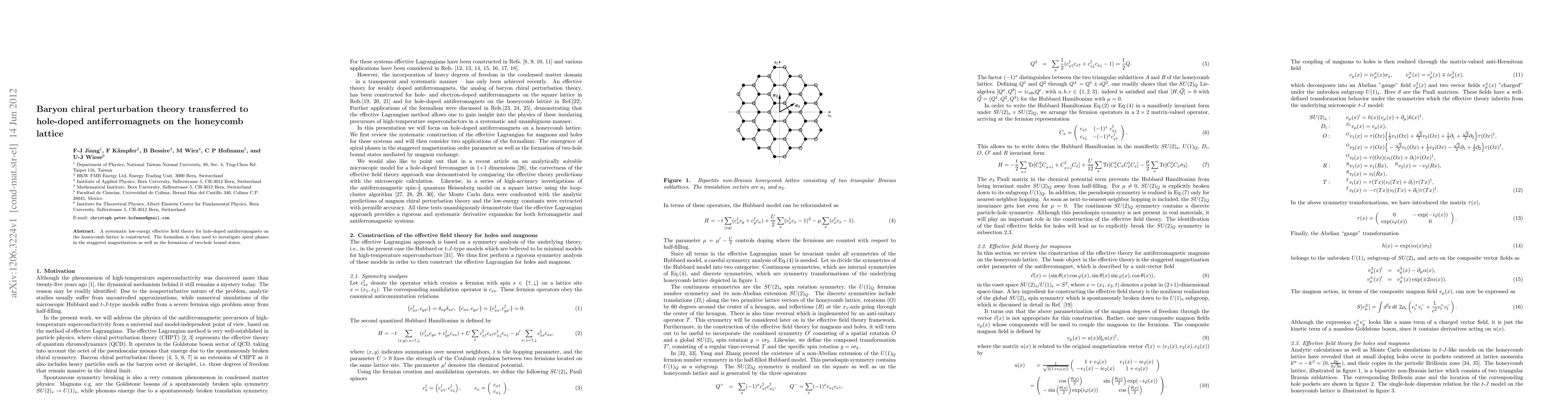 This paper constructs a low-energy effective field theory for hole-doped antiferromagnets on the honeycomb lattice, focusing on spiral phases in staggered magnetization and the formation of two-hole bound states.