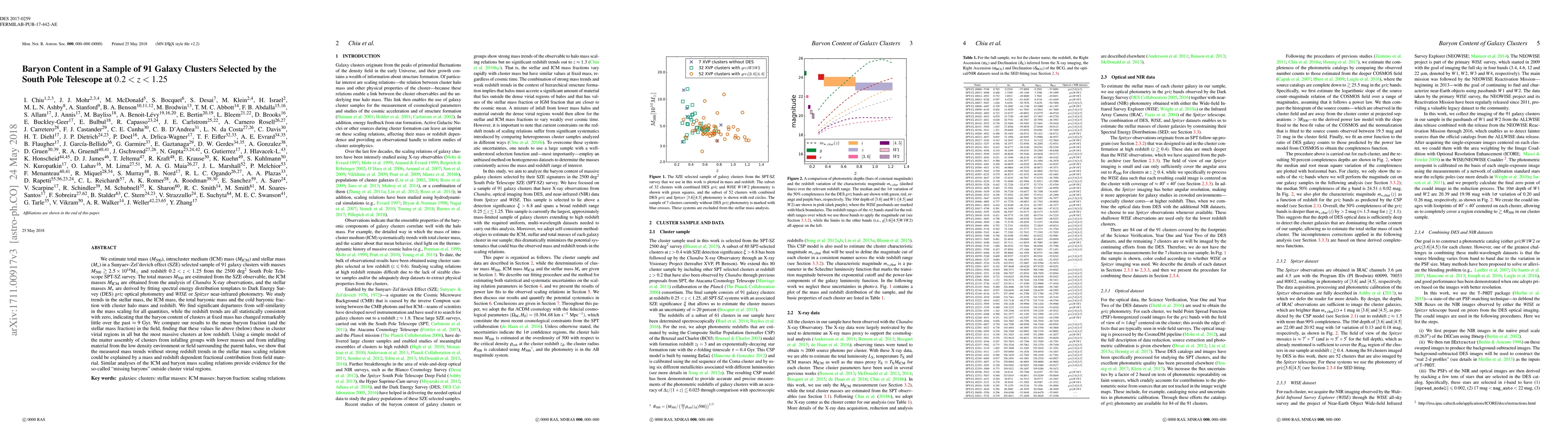 Researchers studied 91 galaxy clusters, estimating their total mass, intracluster medium mass, stellar mass, and finding significant departures from self-similarity in baryon content trends with cluster mass and redshift, suggesting that the baryon content of clusters has changed little over the past 9 Gyr.