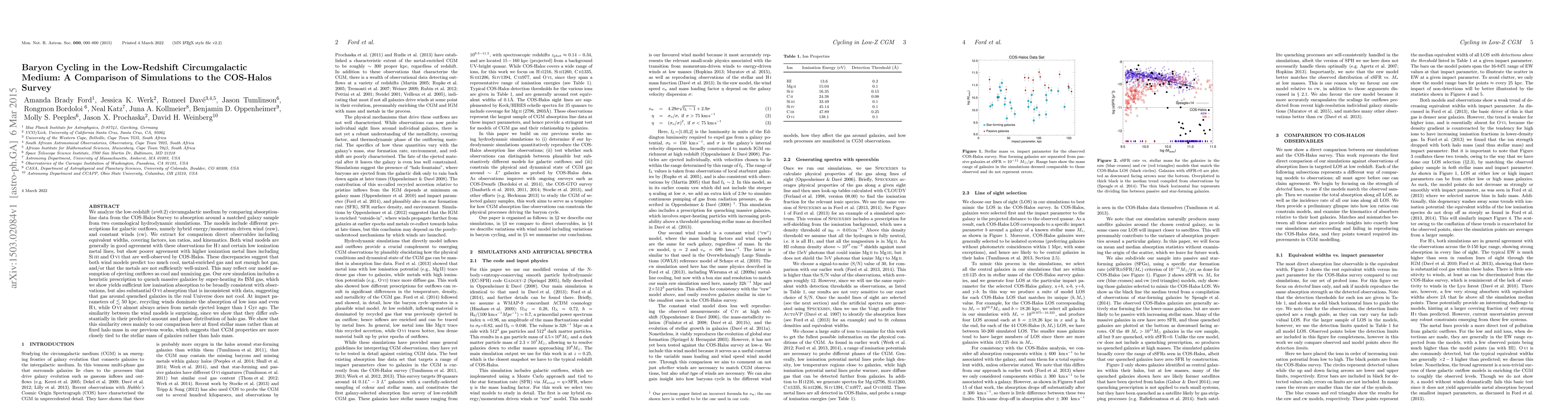 We analyze the low-redshift (z~0.2) circumgalactic medium by comparing absorption-line data from the COS-Halos Survey to absorption around a matched galaxy sample from two cosmological hydrodynamic simulations. The models include different prescriptions for galactic outflows, namely hybrid energy/momentum driven wind (ezw), and constant winds (cw). We extract for comparison direct observables including equivalent widths, covering factors, ion ratios, and kinematics. Both wind models are generally in good agreement with these observations for HI and certain low ionization metal lines, but show poorer agreement with higher ionization metal lines including SiIII and OVI that are well-observed by COS-Halos. These discrepancies suggest that both wind models predict too much cool, metal-enriched gas and not enough hot gas, and/or that the metals are not sufficiently well-mixed. This may reflect our model assumption of ejecting outflows as cool and unmixing gas. Our ezw simulation includes a heuristic prescription to quench massive galaxies by super-heating its ISM gas, which we show yields sufficient low ionisation absorption to be broadly consistent with observations, but also substantial OVI absorption that is inconsistent with data, suggesting that gas around quenched galaxies in the real Universe does not cool. At impact parameters of <50 kpc, recycling winds dominate the absorption of low ions and even HI, while OVI almost always arises from metals ejected longer than 1 Gyr ago. The similarity between the wind models is surprising, since we show that they differ substantially in their predicted amount and phase distribution of halo gas. We show that this similarity owes mainly to our comparison here at fixed stellar mass rather than at fixed halo mass in our previous works, which suggests that CGM properties are more closely tied to the stellar mass of galaxies rather than halo mass.