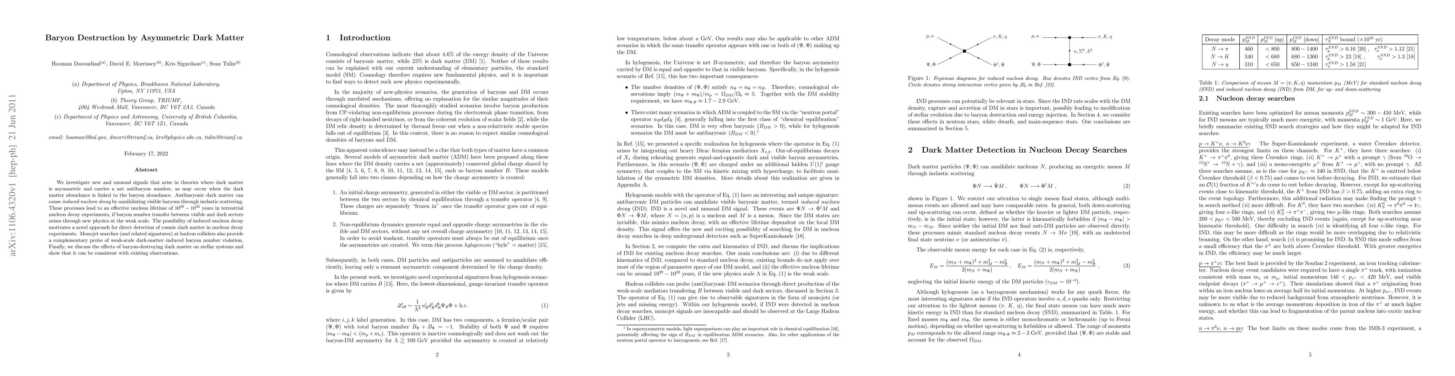 This paper explores asymmetric dark matter with a net antibaryon number, which can induce nucleon decay via inelastic scattering, leading to a nucleon lifetime of 10^29-10^32 years. It proposes novel detection methods for such dark matter and discusses its implications for stellar systems.