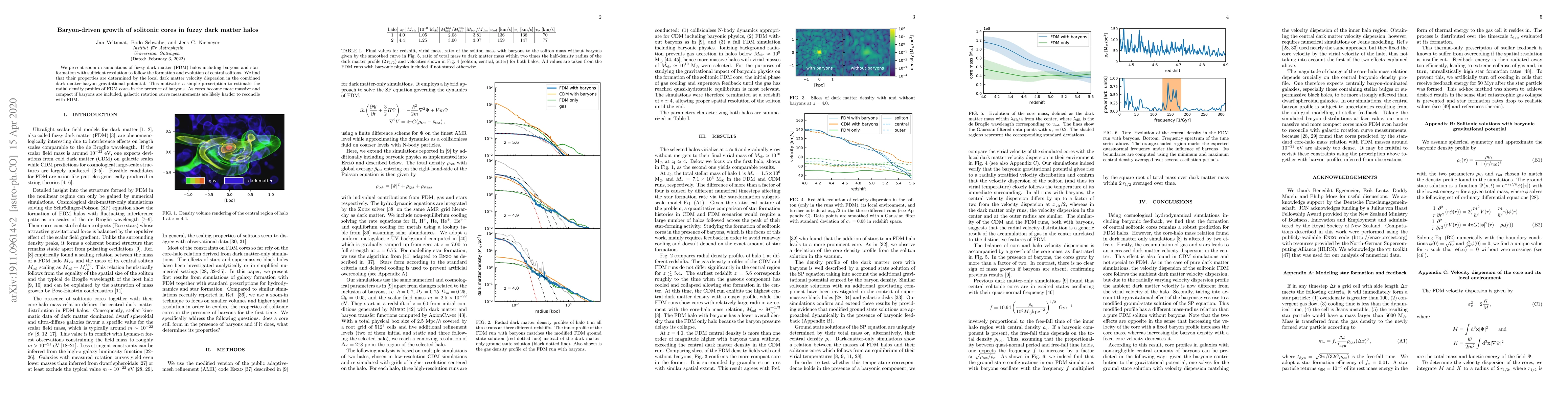 This study uses high-resolution simulations to investigate the impact of baryons on the growth of solitonic cores in fuzzy dark matter halos, finding that baryons influence core properties through the local dark matter-baryon gravitational potential, complicating the reconciliation of galactic rotation curves with fuzzy dark matter models.