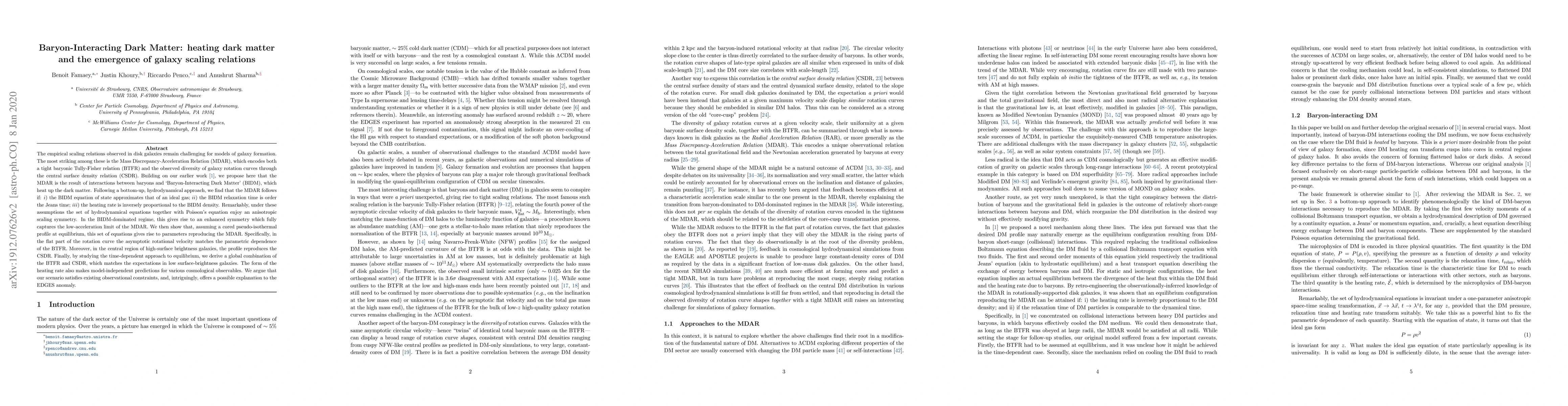 The empirical scaling relations observed in disk galaxies remain challenging for models of galaxy formation. The most striking among these is the Mass Discrepancy-Acceleration Relation (MDAR), which encodes both a tight baryonic Tully-Fisher relation (BTFR) and the observed diversity of galaxy rotation curves through the central surface density relation (CSDR). Building on our earlier work, we propose here that the MDAR is the result of interactions between baryons and 'Baryon-Interacting Dark Matter' (BIDM), which heat up the dark matter. Following a bottom-up, hydrodynamical approach, we find that the MDAR follows if: $i)$ the BIDM equation of state approximates that of an ideal gas; $ii)$ the BIDM relaxation time is order the Jeans time; $iii)$ the heating rate is inversely proportional to the BIDM density. Remarkably, under these assumptions the set of hydrodynamical equations together with Poisson's equation enjoy an anisotropic scaling symmetry. In the BIDM-dominated regime, this gives rise to an enhanced symmetry which fully captures the low-acceleration limit of the MDAR. We then show that, assuming a cored pseudo-isothermal profile at equilibrium, this set of equations gives rise to parameters reproducing the MDAR. Specifically, in the flat part of the rotation curve the asymptotic rotational velocity matches the parametric dependence of the BTFR. Moreover, in the central region of high-surface brightness galaxies, the profile reproduces the CSDR. Finally, by studying the time-dependent approach to equilibrium, we derive a global combination of the BTFR and CSDR, which matches the expectations in low surface-brightness galaxies. The form of the heating rate also makes model-independent predictions for various cosmological observables. We argue that our scenario satisfies existing observational constraints, and, intriguingly, offers a possible explanation to the EDGES anomaly.