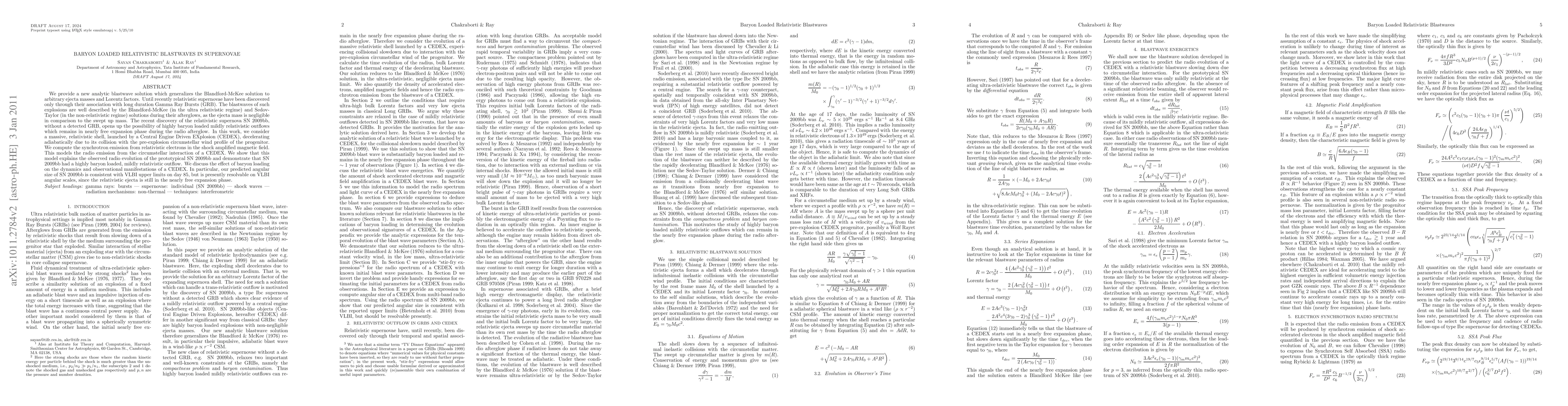 This paper presents a new analytic blastwave model for baryon-loaded relativistic supernovae, expanding on the Blandford-McKee solution to include significant ejecta masses. It applies this model to explain the radio emission from SN 2009bb, demonstrating that it was a highly baryon loaded, mildly relativistic explosion, consistent with observed radio evolution and VLBI constraints.