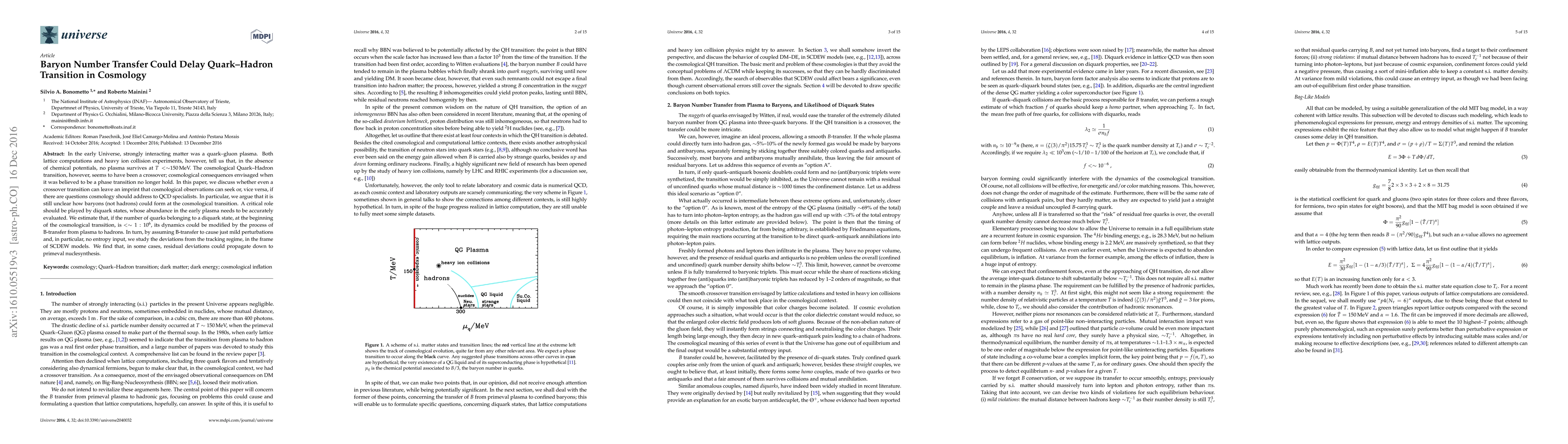In the early Universe, strongly interacting matter was a quark-gluon plasma. Both lattice computations and heavy ion collision experiments however tell us that, in the absence of chemical potentials, no plasma survives at $T <\sim 150$ MeV. The cosmological Quark-Hadron transition, however, seems to have been a crossover; cosmological consequences envisaged when it was believed to be a phase transition no longer hold. In this paper we discuss whether even a crossover transition can leave an imprint that cosmological observations can seek or, viceversa, there are questions cosmology should address to QCD specialists. In particular, we argue that it is still unclear how baryons (not hadrons) could form at the cosmological transition. A critical role should be played by diquark states, whose abundance in the early plasma needs to be accurately evaluated. We estimate that, if the number of quarks belonging to a diquark state, at the beginning of the cosmological transition, is $<\sim 1:10^6$, its dynamics could be modified by the process of B-transfer from plasma to hadrons. In turn, by assuming B-transfer to cause just mild perturbations and, in particular, no entropy input, we study the deviations from the tracking regime, in the frame of SCDEW models. We find that, in some cases, residual deviations could propagate down to primeval nuclesynthesis.