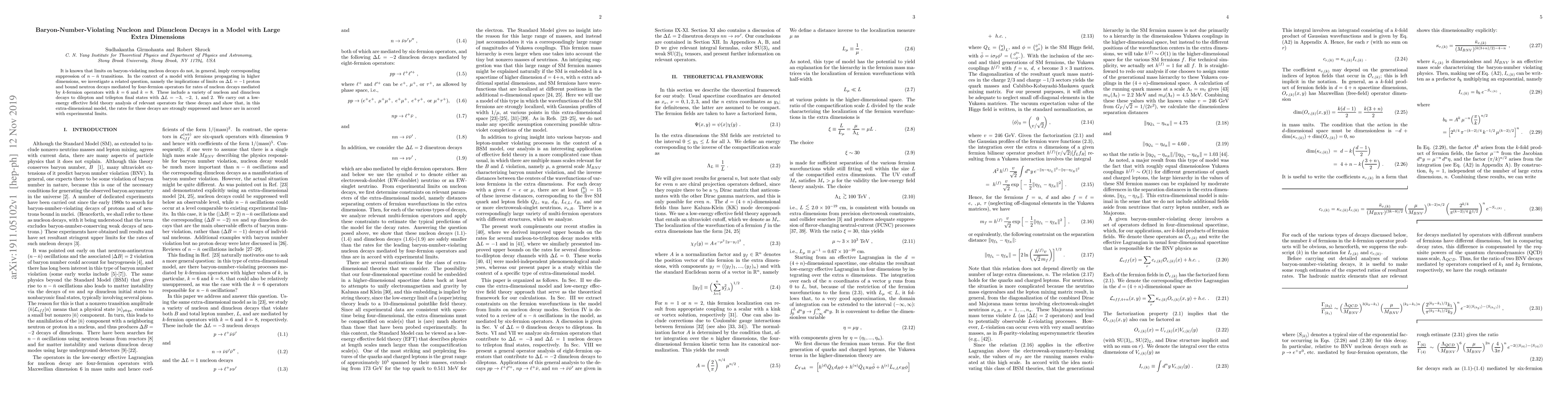 This paper explores nucleon and dinucleon decay processes in a model with large extra dimensions, focusing on the suppression of baryon-number-violating decays despite limits on $\Delta L=-1$ proton and neutron decays. It concludes that the decay rates for higher-order $k$-fermion processes are strongly suppressed, aligning with experimental constraints.