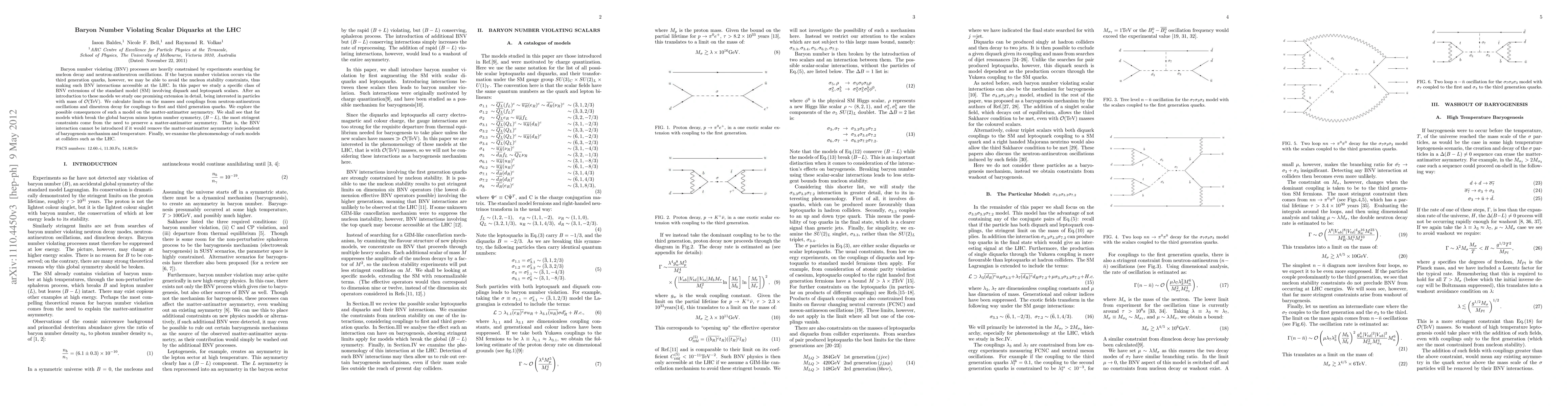 This paper investigates baryon number violating (BNV) scalar diquarks in the context of the LHC, focusing on models that allow BNV via third-generation quarks to avoid nucleon stability constraints. It explores the implications for matter-antimatter asymmetry and presents collider phenomenology for BNV interactions.