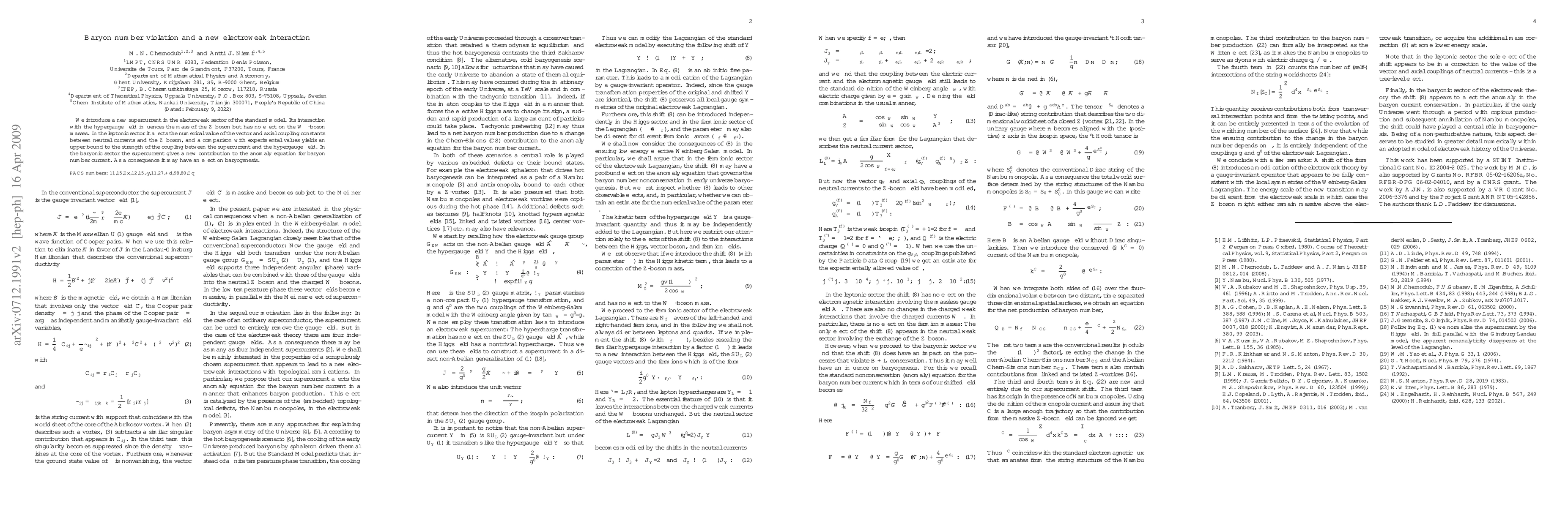 This paper proposes a new supercurrent in the electroweak sector that influences Z boson mass and leptonic neutral current coupling constants, while potentially contributing to baryon number violation and affecting baryogenesis. Experimental comparisons provide an upper limit on the supercurrent's coupling strength.